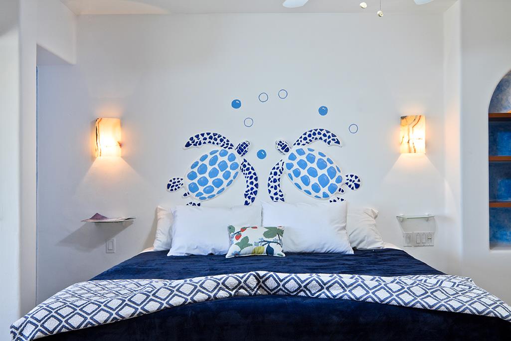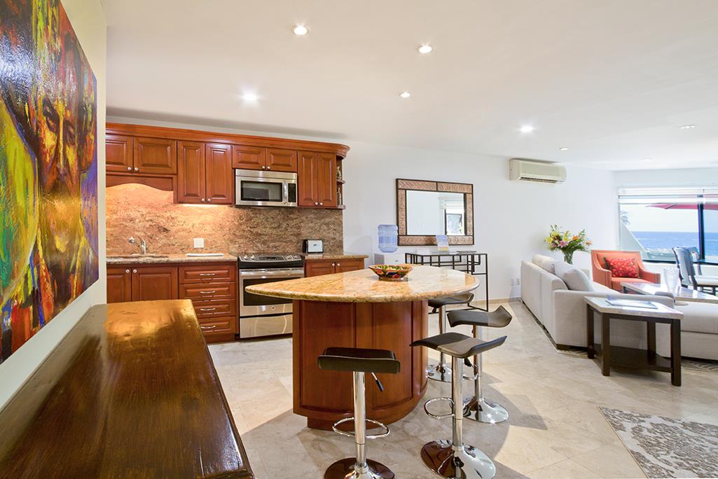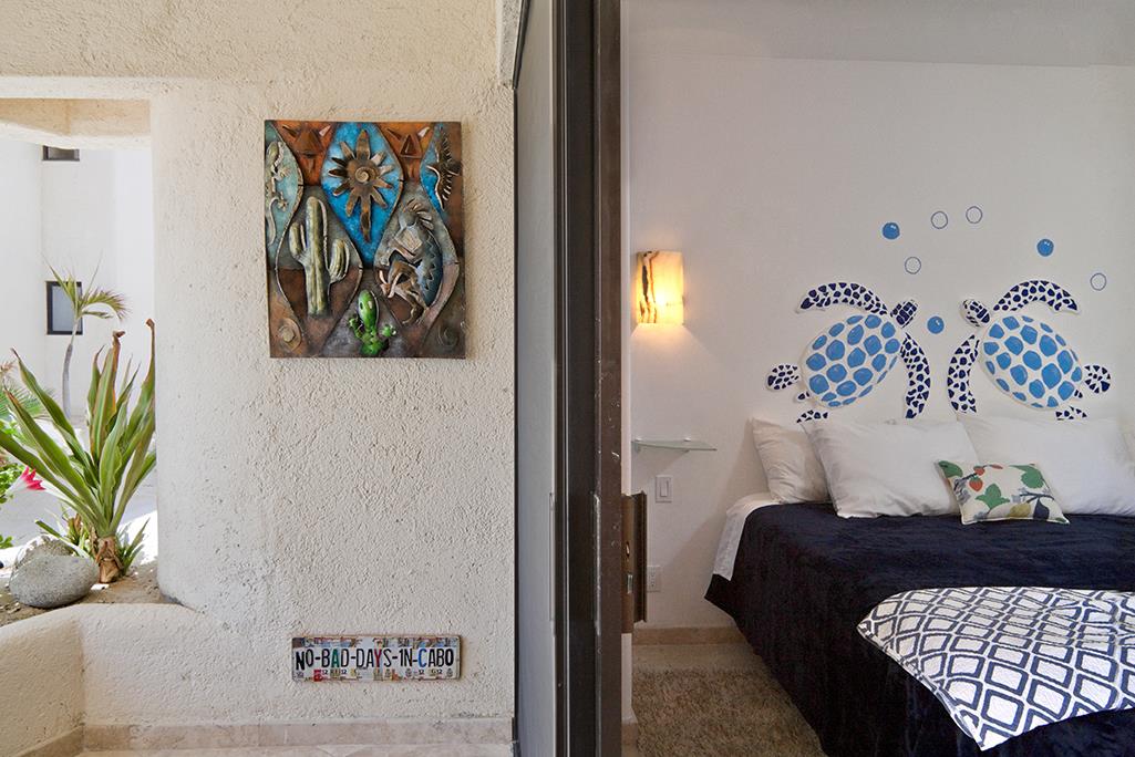 CASA DE CABO is tastefully decorated with fine authentic Mexican artwork and comfortable, contemporary furniture.  The kitchen is fully equipped for all your cooking needs and offers a view to the deck, beach and ocean.  King size beds in the large bedrooms and a queen size sleeper sofa in the living room.
