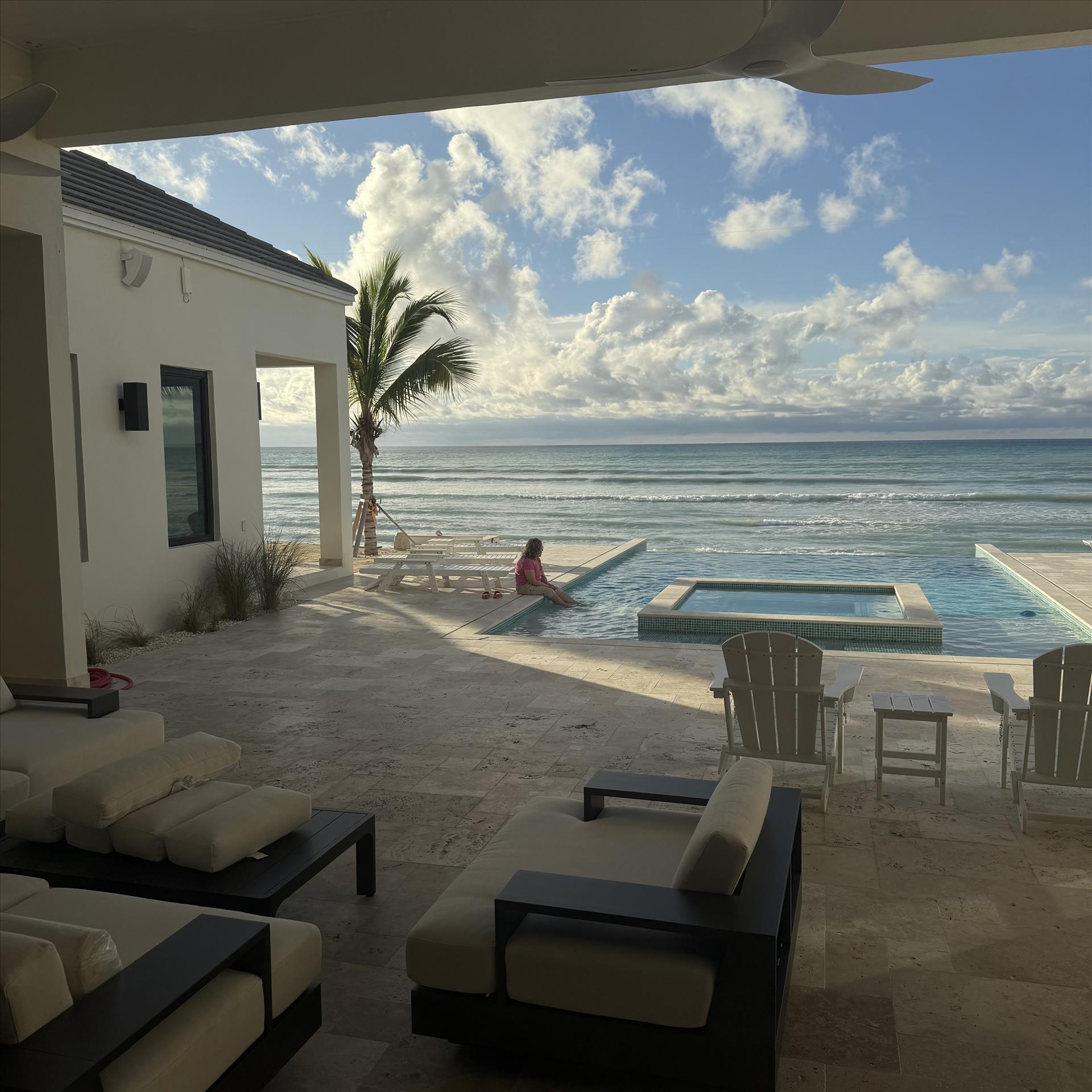 Our spectacular Oceanfront Estate entrance consists of a dramatic 30 feet vaulted ceiling overlooking our infinity edge pool and the Atlantic Ocean. Oceanfront home consists of a North Wing and South Wing, with the connecting center space consisting of Living, Dining, Billiards and Kitchen area.
