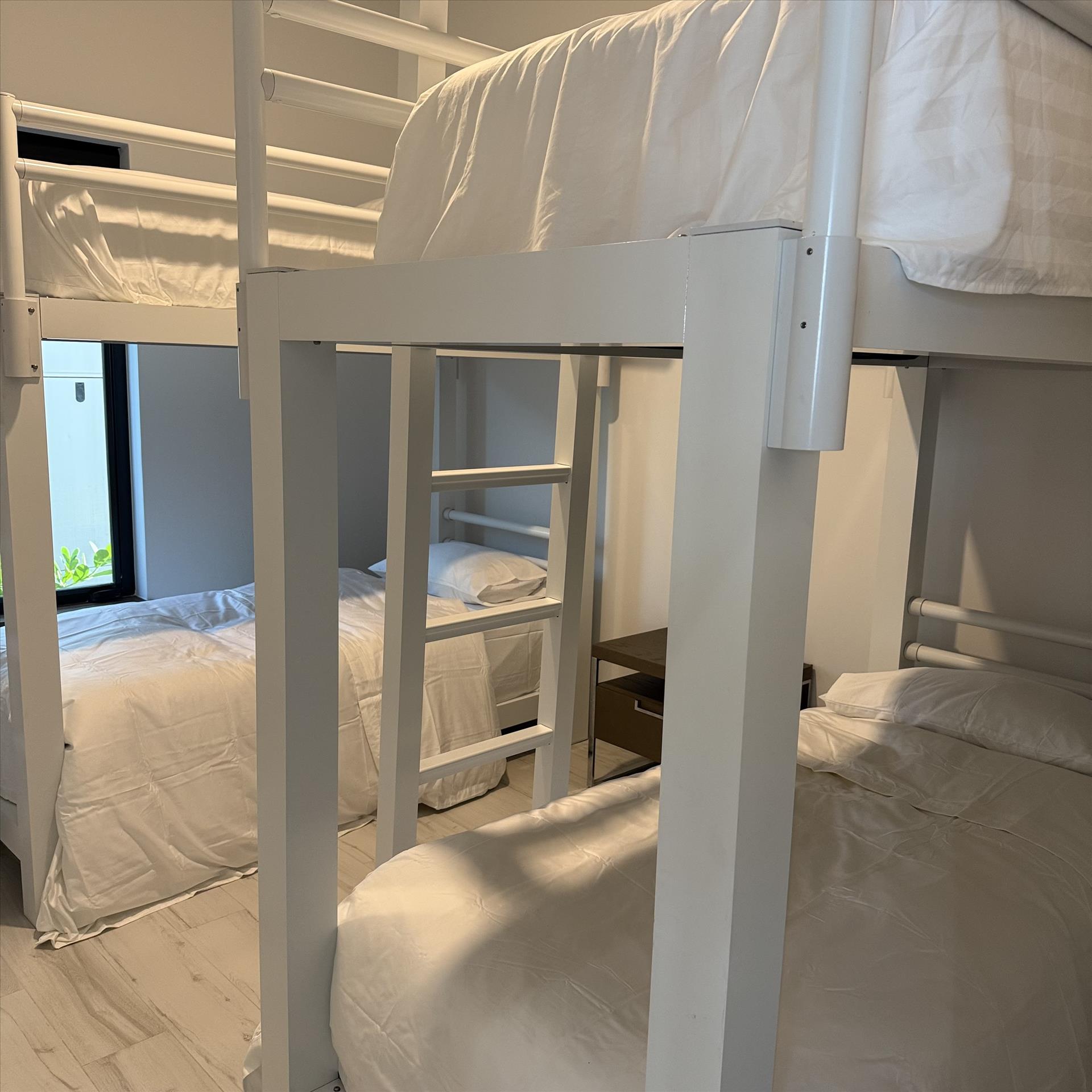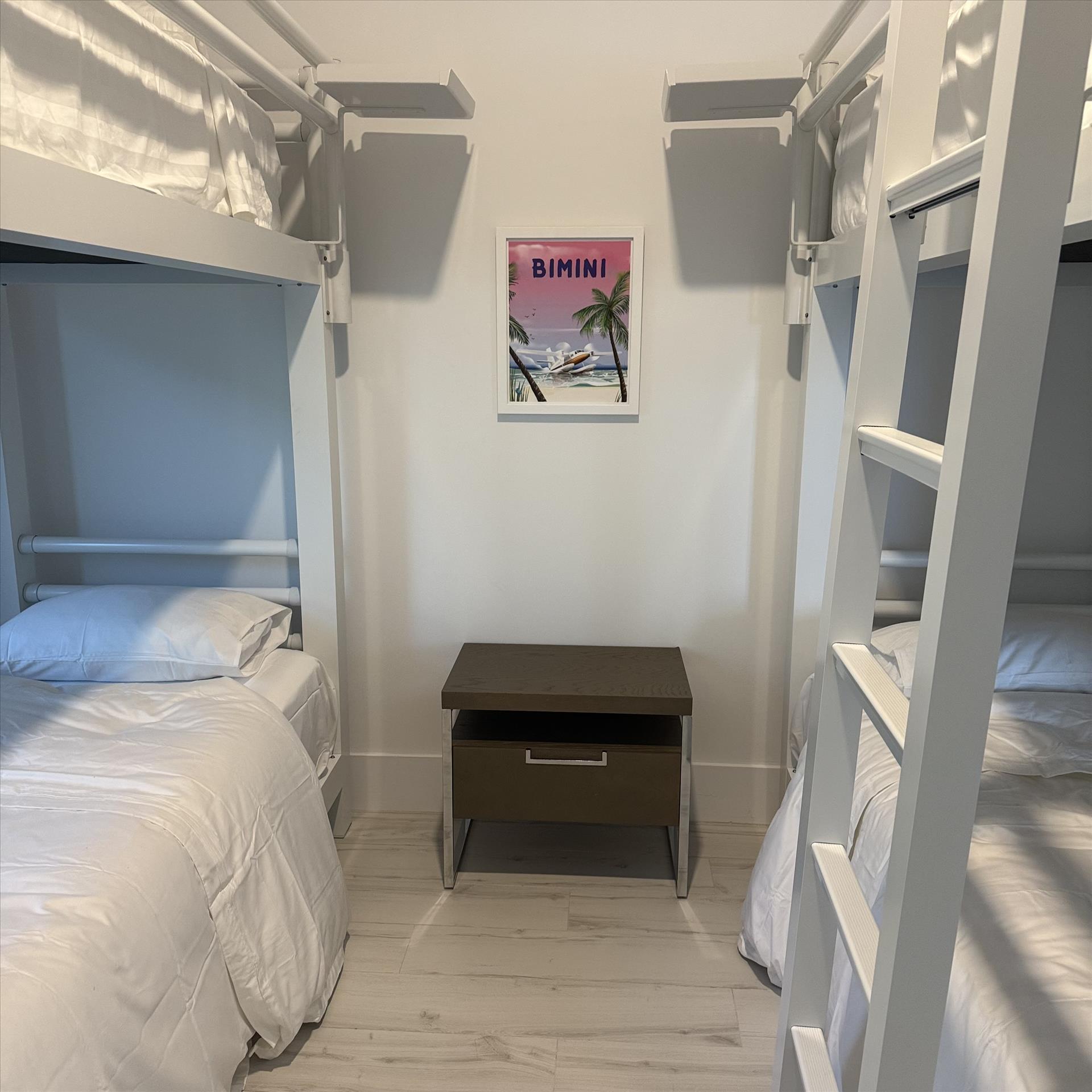 The bedrooms consist of a North Wing Master bedroom with King size bed, walk-in closet, and private bathroom highlight the master bedroom. North Wing of Estate also consists of one bedroom to west with two queen size beds, one bedroom to east with two twin beds, both sharing a jack/jill bathroom. The South Wing Master bedroom with King size bed, walk-in closet, and private bathroom highlight the master bedroom. The South Wing of Estate also consists of one bedroom to East with two queen size beds, one bedroom to West with two queen size beds, both sharing a jack/jill bathroom.