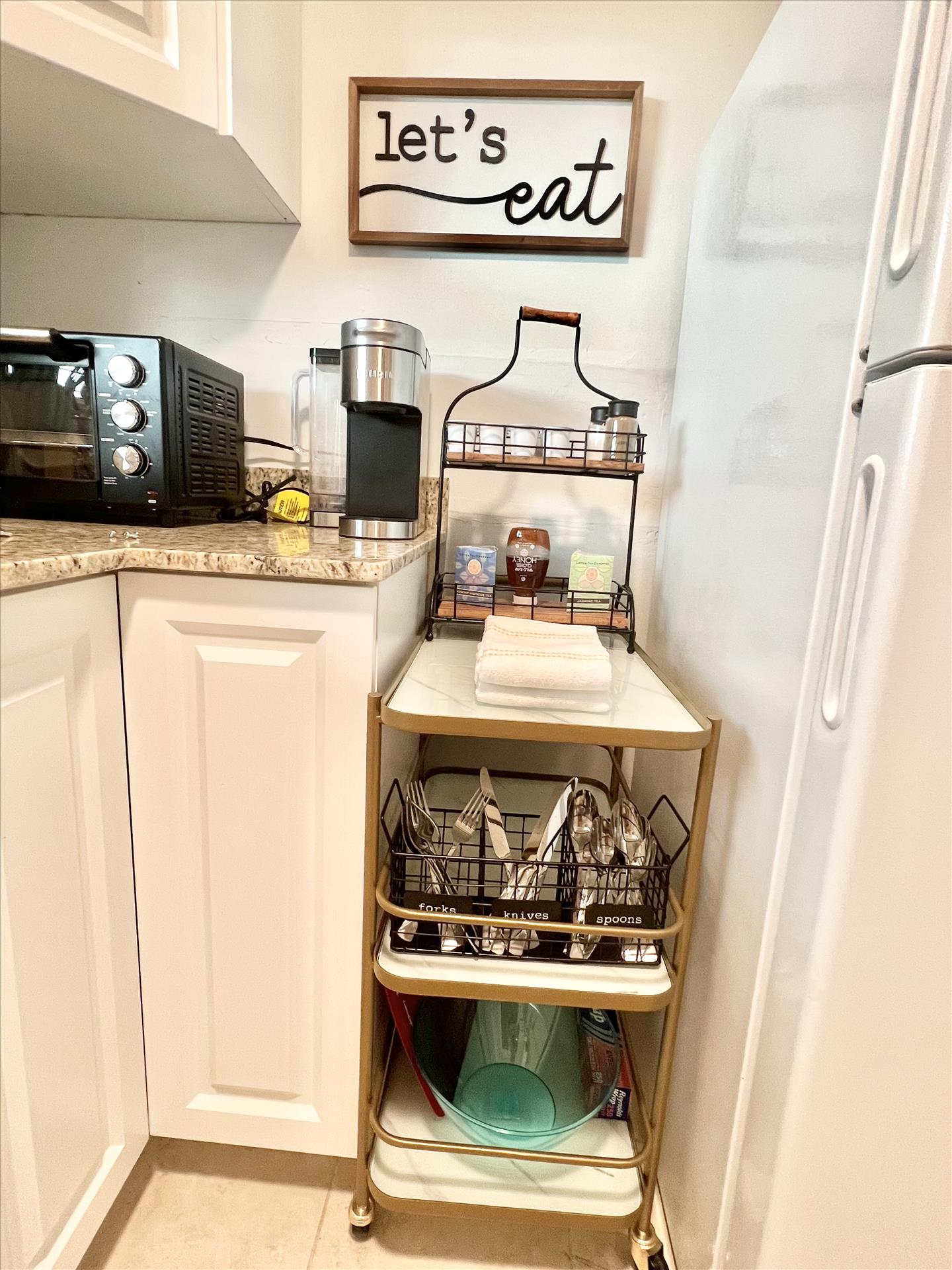 Fully Stoked Kitchen has all the necessities, big screen tv in the living room, queen sized bed in the bedroom. Washer and dryer on site, Single car garage. High speed internet and basic cable is provided.