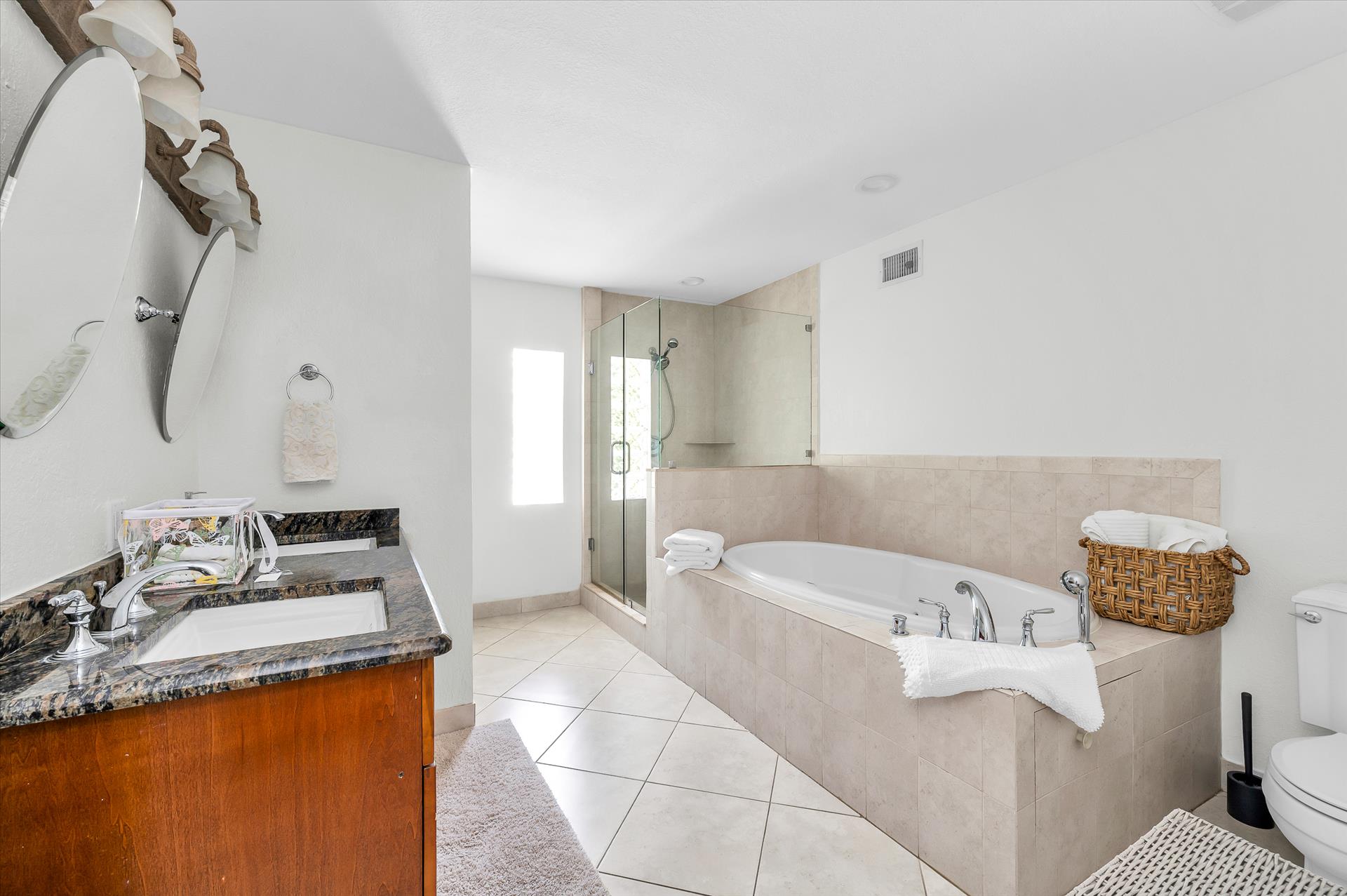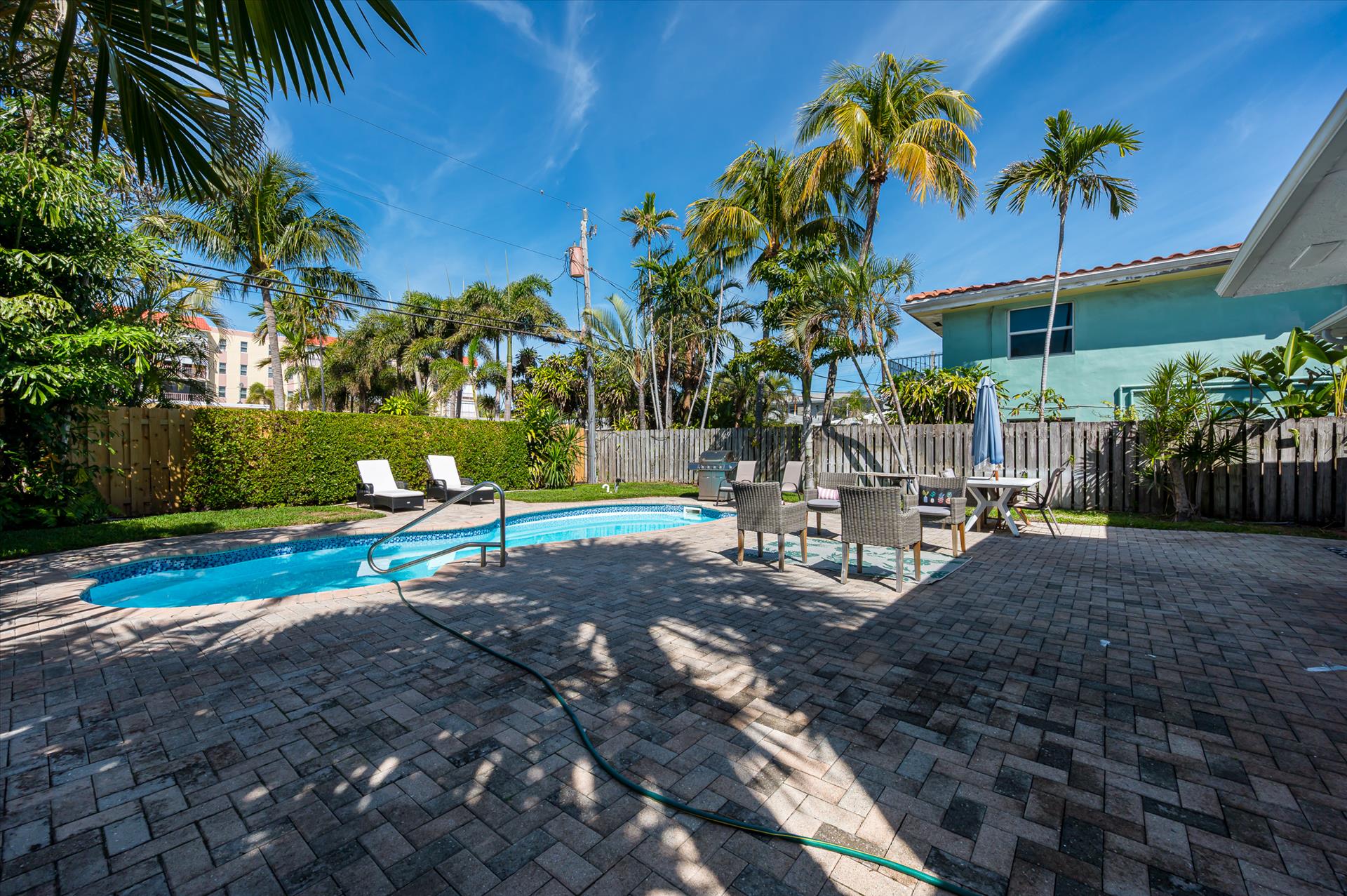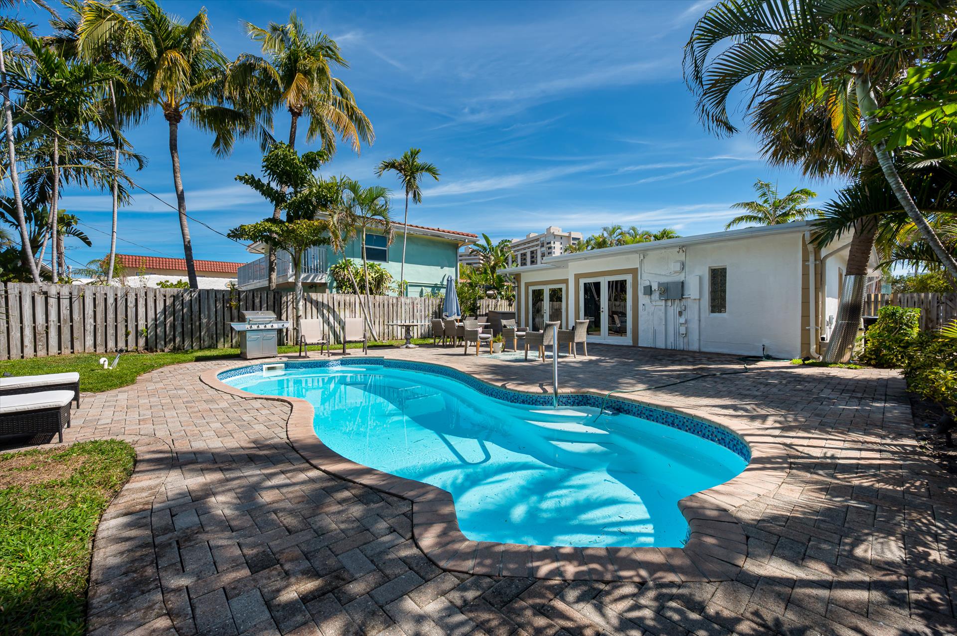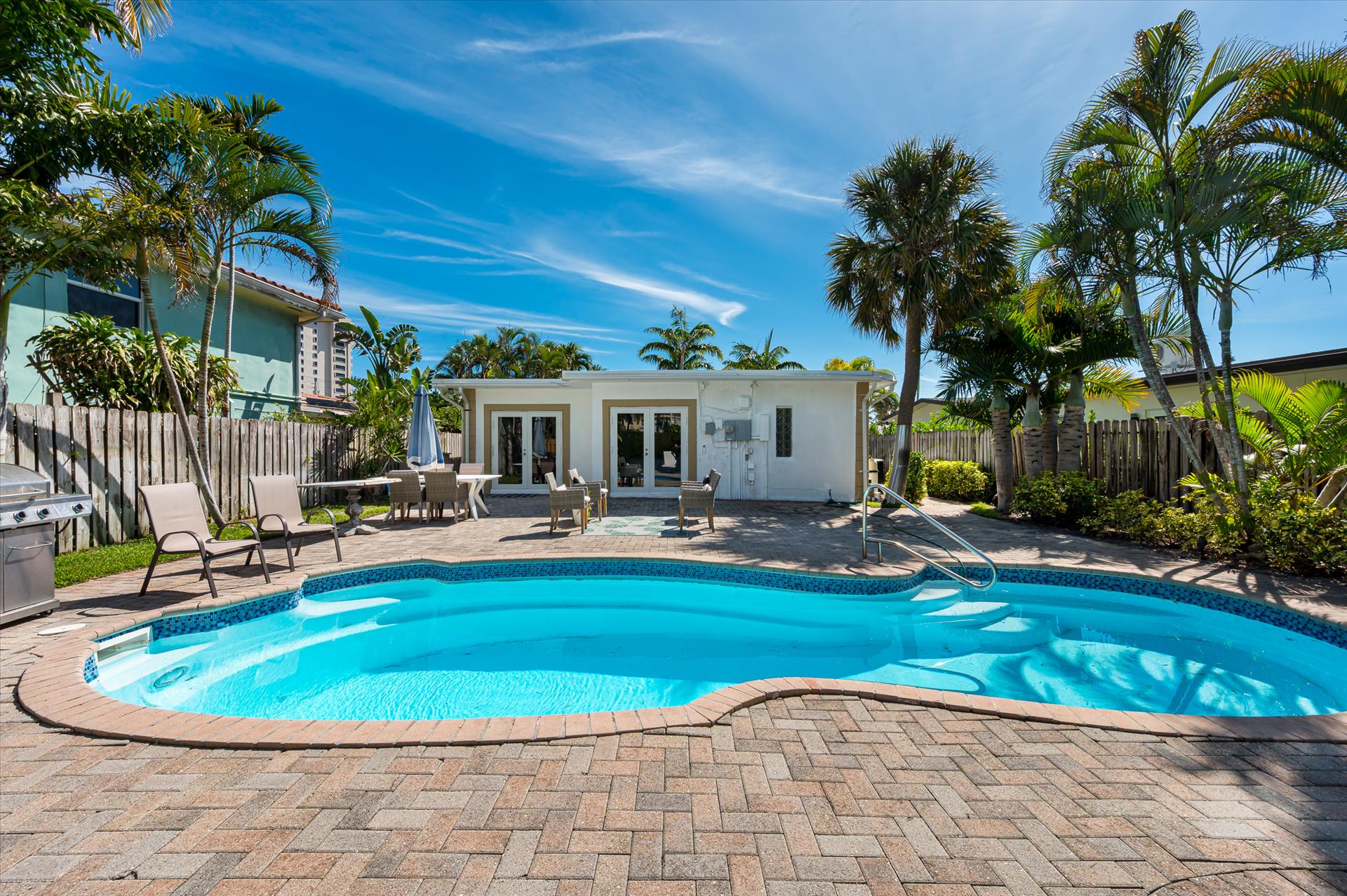 Relax with the whole family at this peaceful place to stay. Cozy house with a heated pool , located at the beach doorstep is a wonderful vacation spot ! Fully equipped kitchen, gorgeous outdoor area , unbeatable location and comfortable furniture ! Bedding : 2 Queen bed and 1 Full. Bathroom # 1: walk-in shower; bathroom #2 : soaking tub, walk-in shower. House features in-unit washer/dryer .