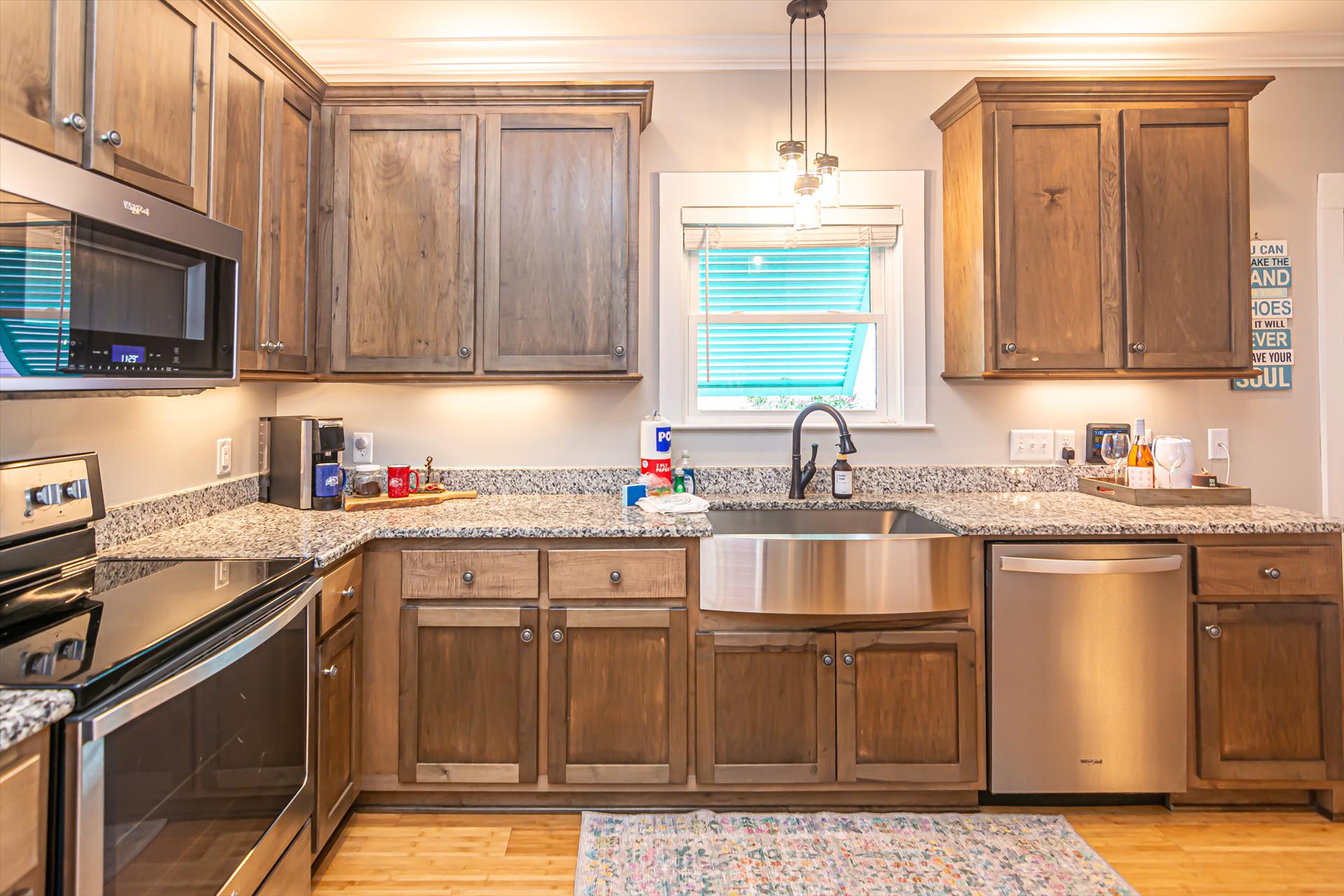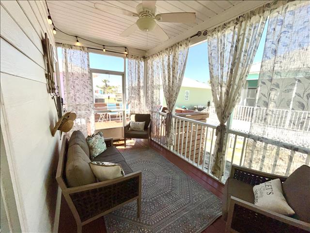Enjoy three comfy bedrooms, a fully-equipped kitchen, and a living area with a 65-inch Smart TV. Steps from the pool and white sandy beaches, it's perfect for families. The screened patio offers a relaxing pool view, enhancing your peaceful retreat.