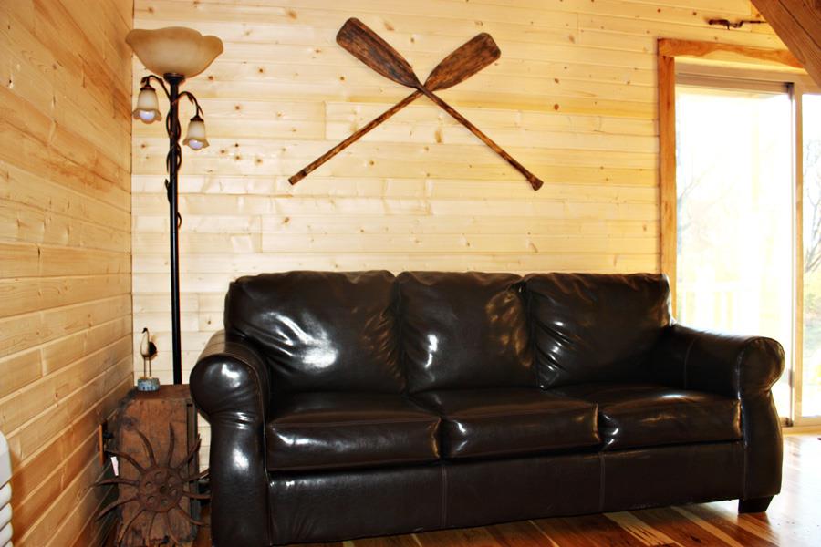 Fishing Hole cabin features one (1) bedroom, one (1) cozy loft, furnished kitchen, one (1) bathroom, and a front porch. Lodging for 6+ adults.