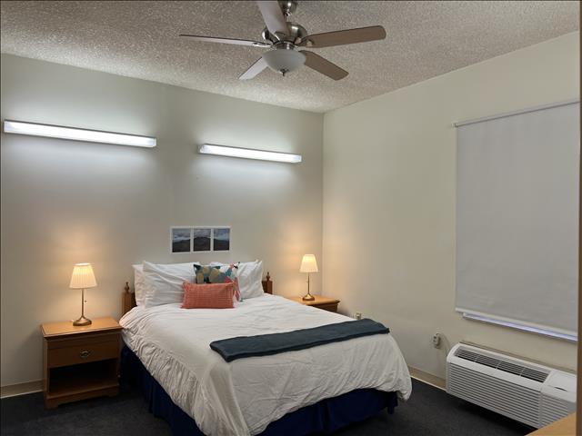 This MWR suite at Base San Juan features a queen bed and can comfortably accommodate two people. Guests can enjoy waking up to views of the beautiful San Juan Bay and have a wonderful vacation exploring the charming streets of Old San Juan.