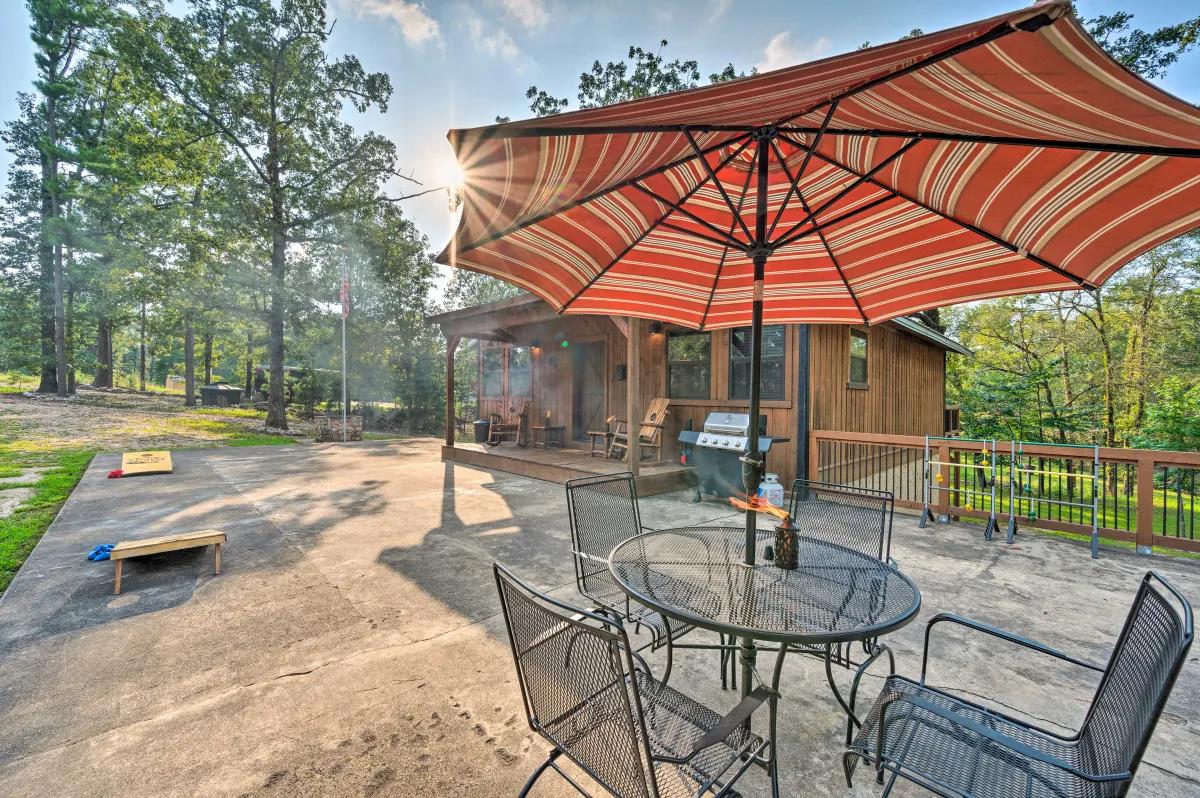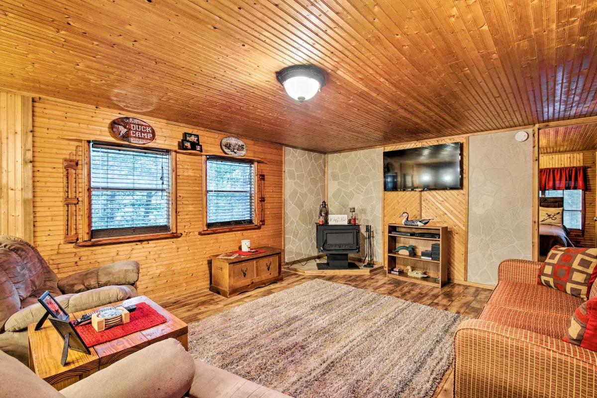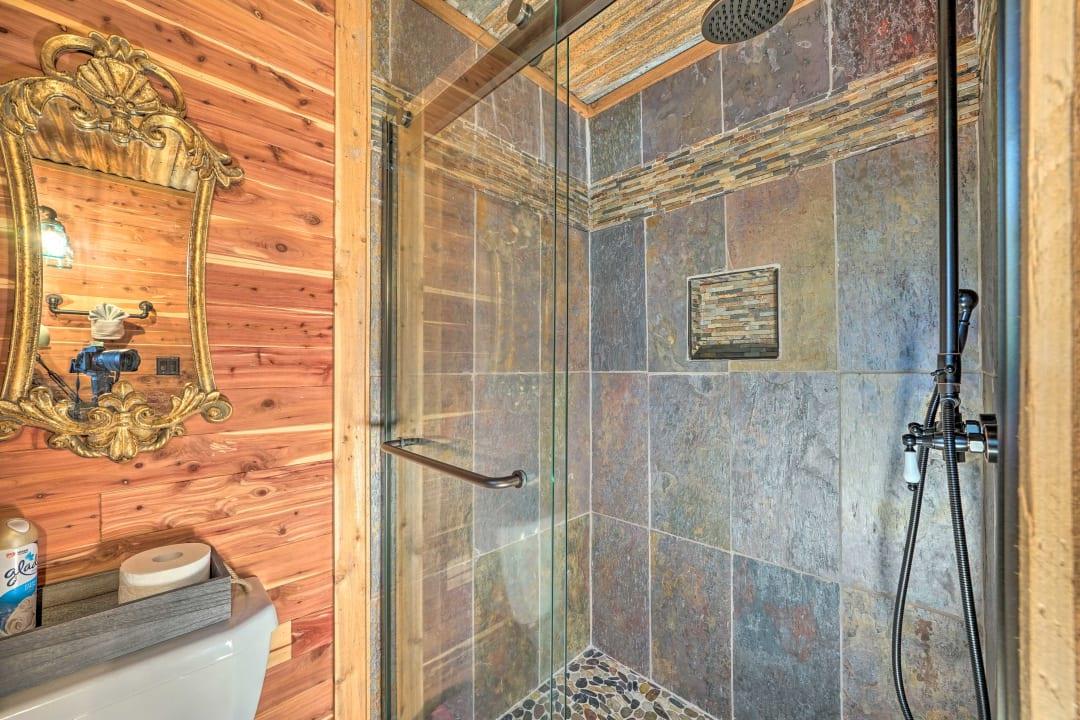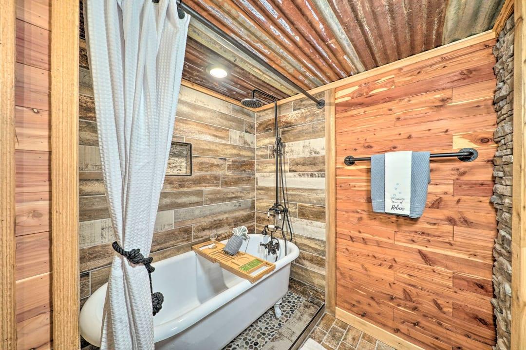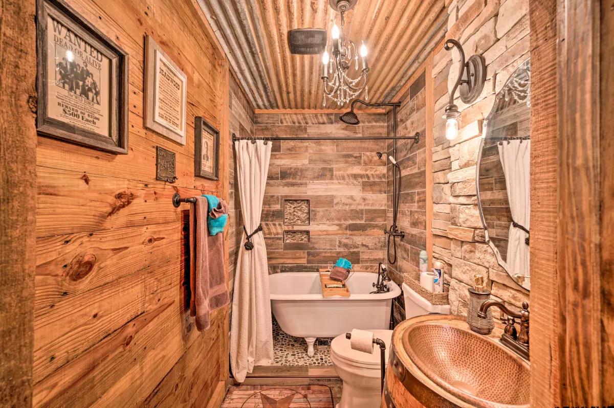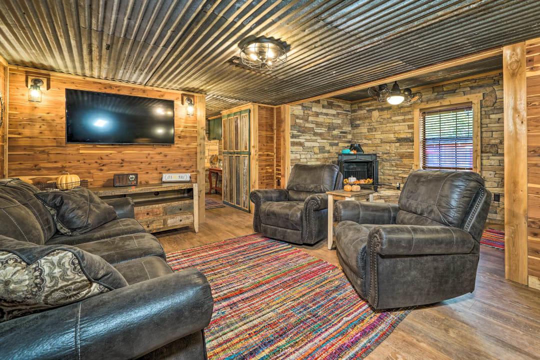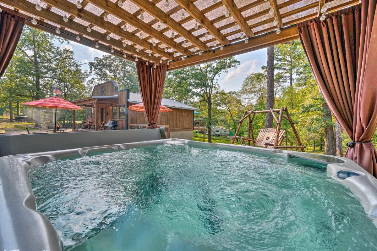 This rental is between 3 cabins- Western Daze, Rustic Daze and Hunting Daze - all 3 are on adjoining property - 3 fully equipped kitchens, 8 bedroom , 6 bath vacation home. Western Daze was built in 2019, Rustic Daze was completely remolded in 2021 and has a very large deck shared with Hunting Daze for a wonderful outdoor area with hot tub and patio furniture. Western Daze has a very large concrete slab patio with large hot tub and patio furniture. This is great for a large group but can also have privacy being in 3 different cabins. It also has a new deck on backside of Hunting Daze built in 2022 and an outdoor firepit. Let this vacation rental be your home away from home while you explore the Hochatown area, hike through Beavers Bend State Park, and get out on the waters of Broken Bow Lake or the Lower Mountain Fork River. While at this private cabin, you will be within walking distance of great restaurants, wineries and breweries!