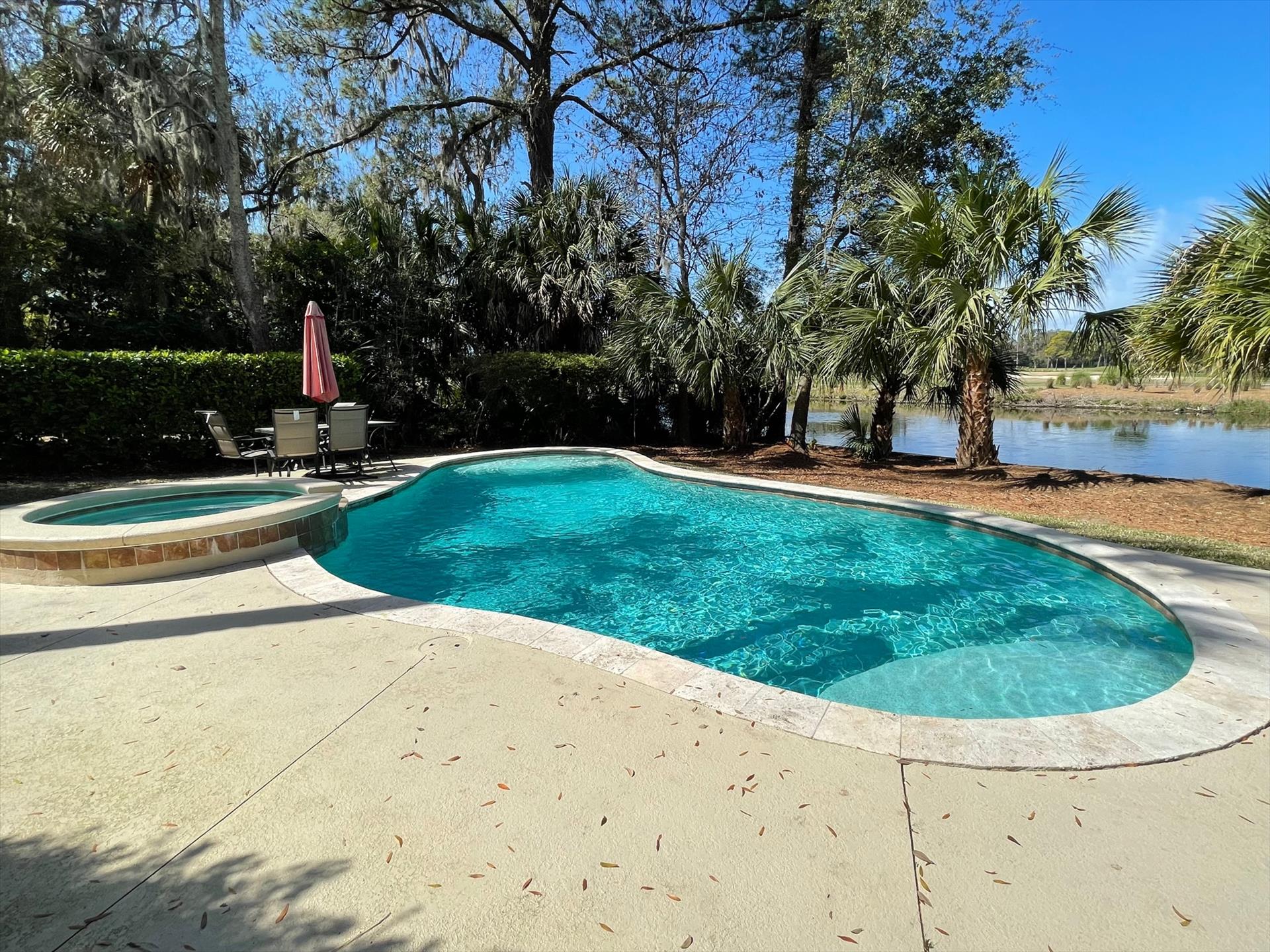 We also have a 1/2 bath on the pool level inside the poolside chill lounge so you don't have to go upstairs to use the bathroom.