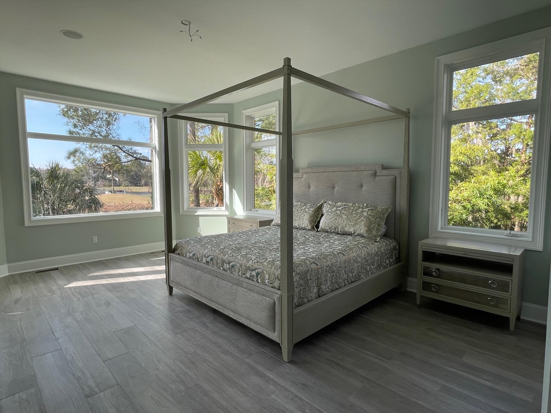 “Island Oasis”- Primary Bedroom: 1 king split adjustable bed with luxurious spa bathroom with extra large shower and free standing air bubble/whirlpool tub. The Primary bedroom also has a dedicated space with a crib and changing table for a baby. Has a 55" QLED TV