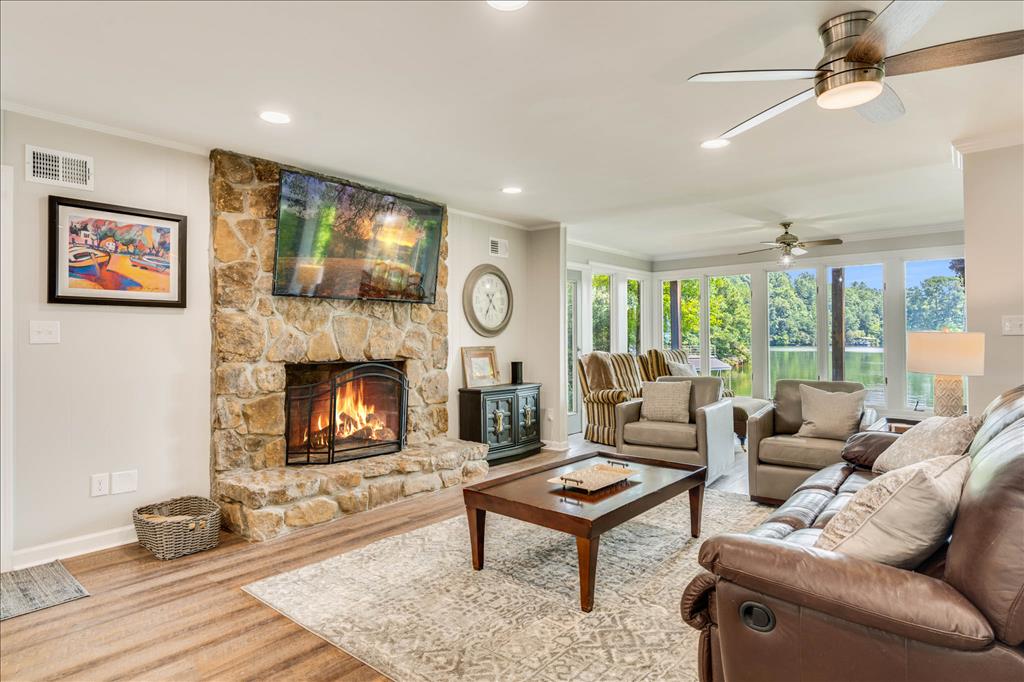 Welcome to Blue Heron Cove by Lake Lanier House Rentals, a lakefront home with views from almost every room. The large private dock is an easy walk down the path or ...