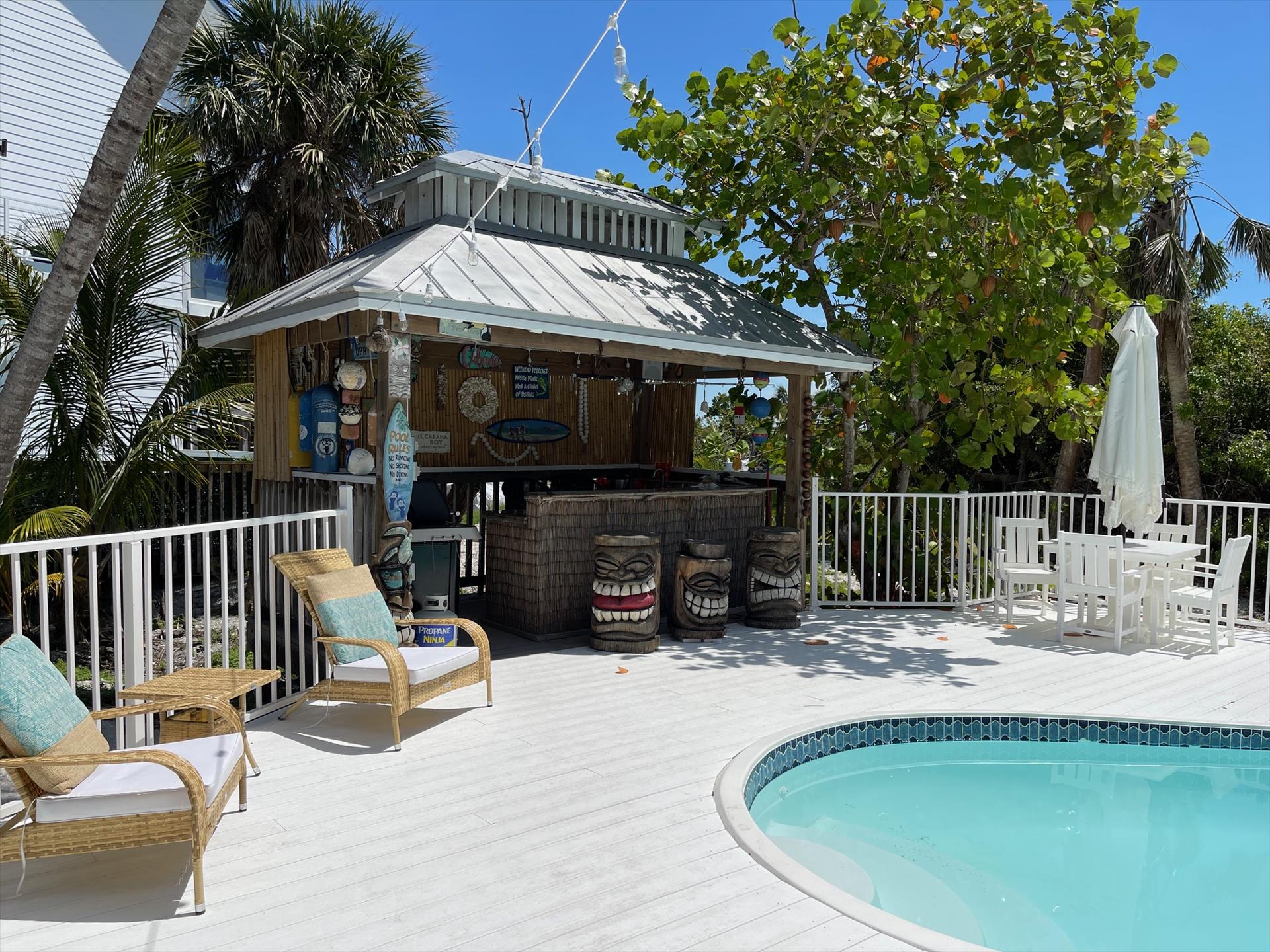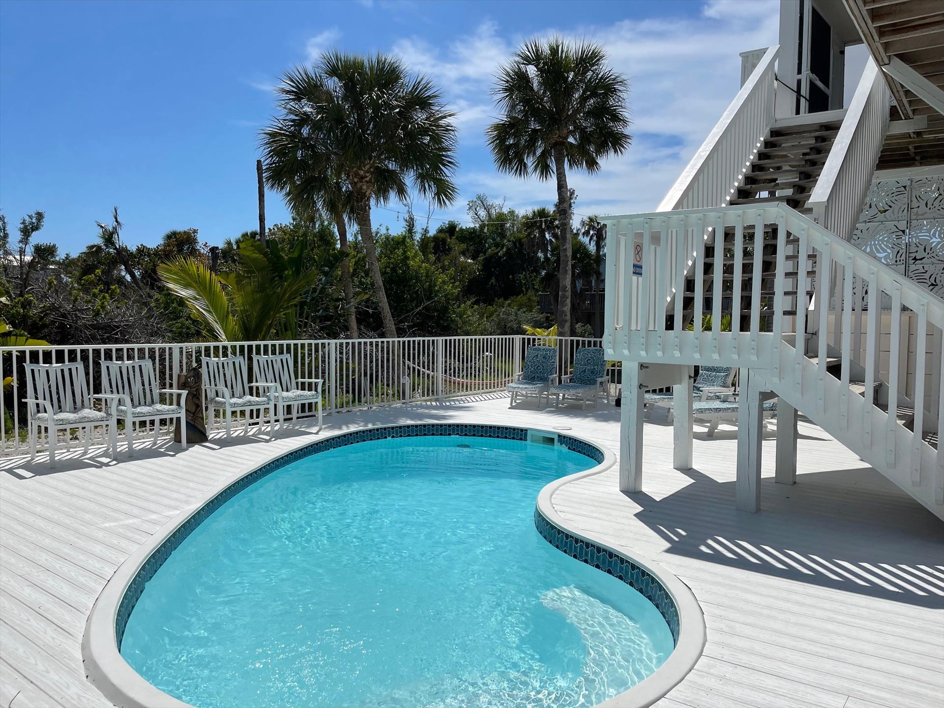 ALL ABOUT PALOMA BEACH HOUSE - Towering in the coconut palms of North Captiva, the Paloma Beach House will serve as your own island resort. From your private ‘Crow’s Nest’ high above the treetops, you will be surrounded by breathtaking views of both the gulf and of the bay. Add to that your own ground level private heated pool – with its spirited poolside Tiki bar – and you have everything you need for a resort-style life unique even to North Captiva Island.