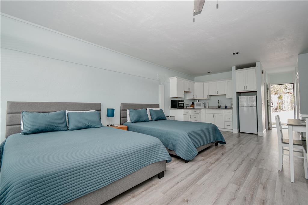 This comfortable space has sleeping for 4 with 2 queen beds and the kitchen has a 4 burner cook top, microwave, coffee maker, toaster and full refrigerator. See you soon!