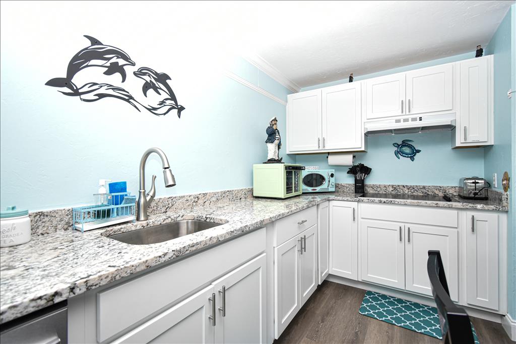 This corner unit has a newly renovated kitchen with an oven and bathroom with a WALK IN shower. New futon sofa for your overnight guests and a kitchen with a over, m...