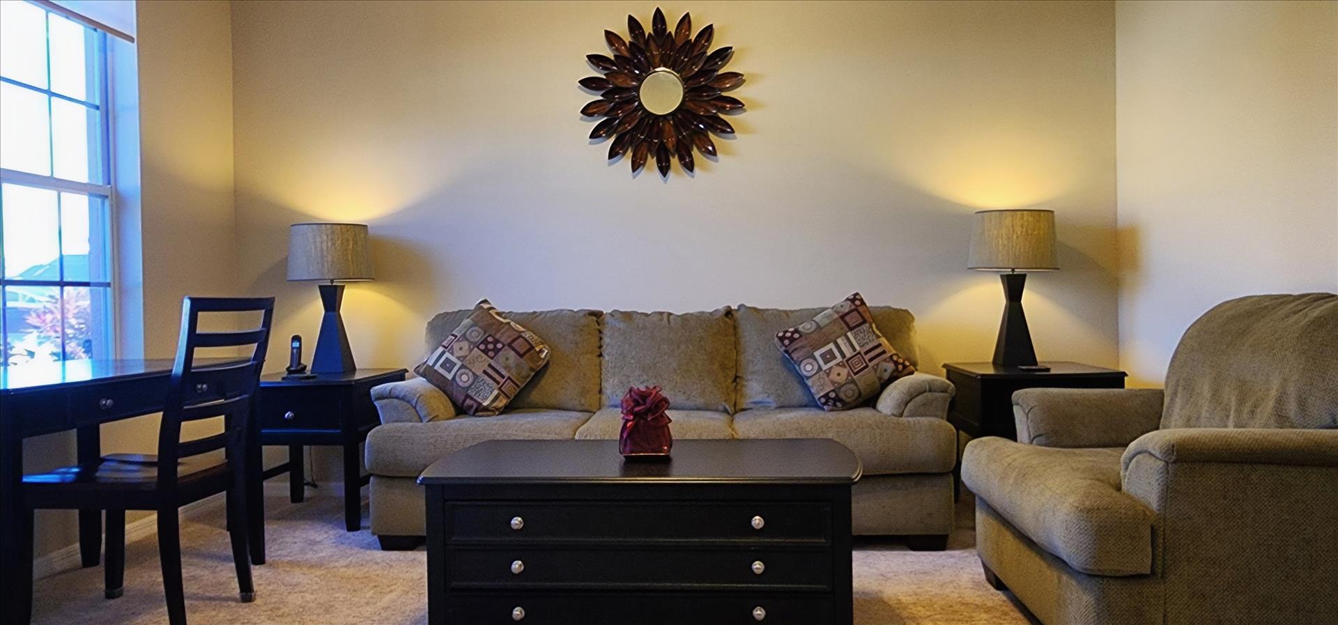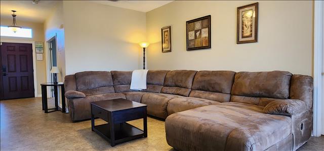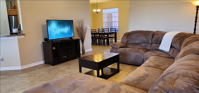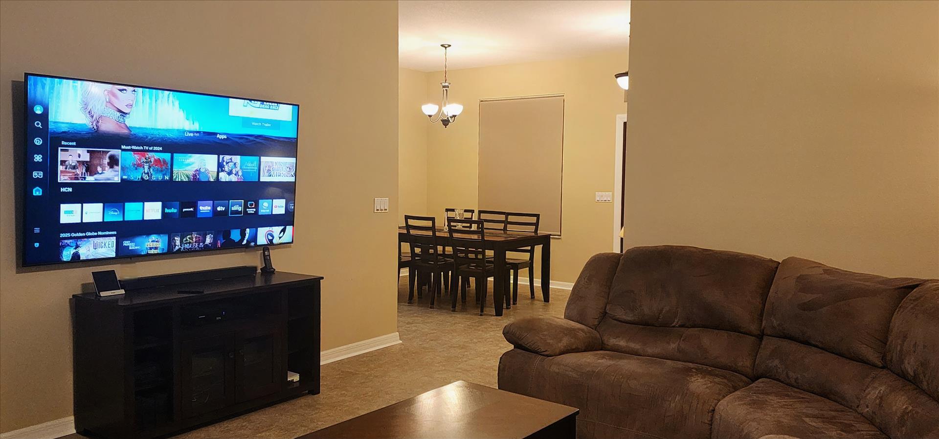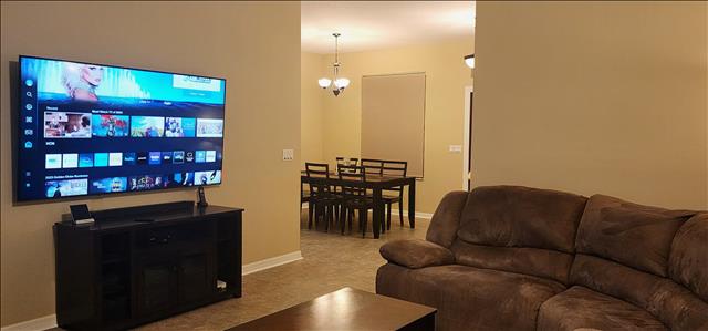 Relaxation at Every Turn:Unwind in our spacious family room, featuring a massive sectional and a 75" Smart TV. The den offers a serene escape for reading or working.