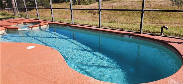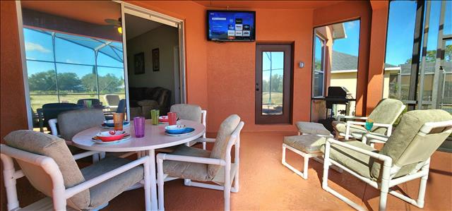 Outdoor Oasis:Our expansive pool deck is perfect for outdoor entertaining. Lounge by the sparkling pool, soak in the hot tub, or dine al fresco under the covered lanai. The extended patio, complete with a gas grill, is ideal for backyard barbecues. There is even a 47" Smart TV.