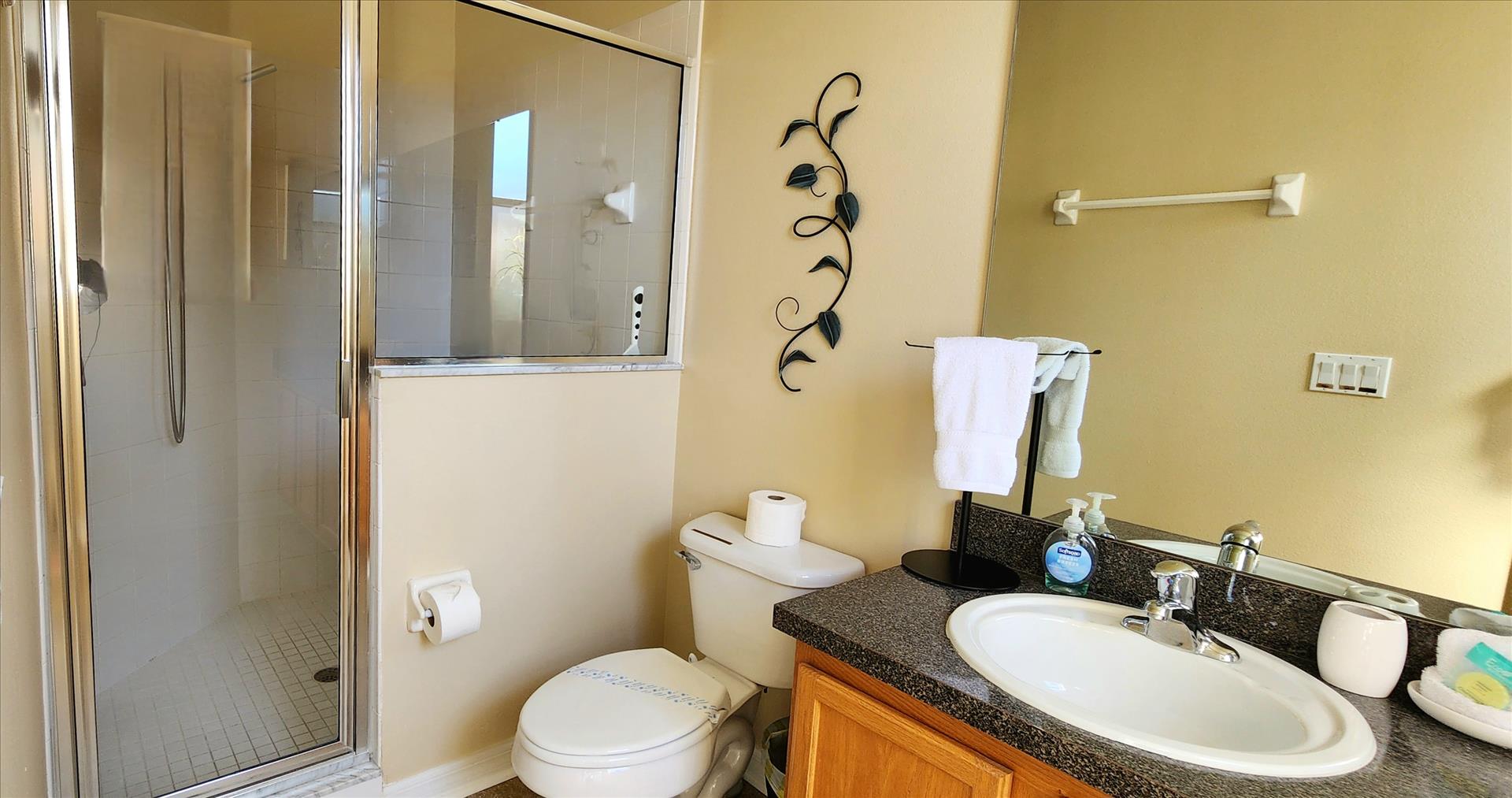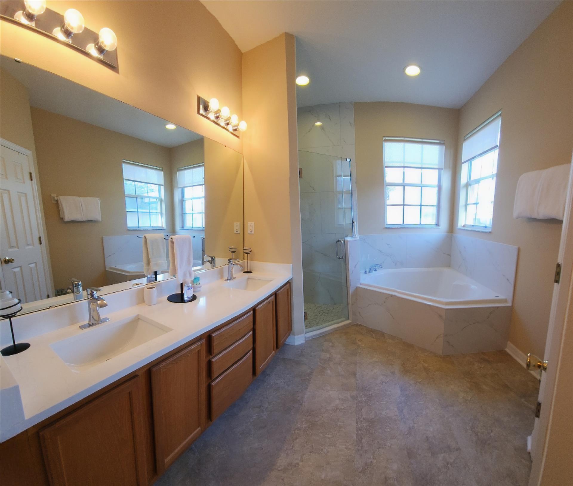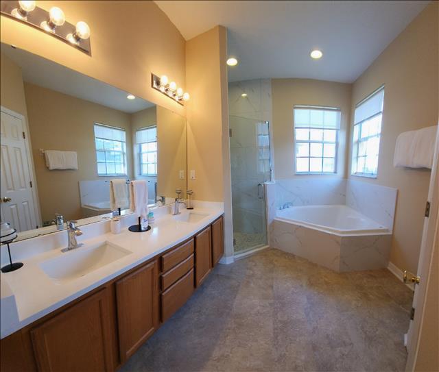 Luxurious Baths:Pamper yourself in our luxurious bathrooms. The 1st primary bath feature a garden tub, separate shower, and dual sinks, and the 2nd en suite features a massive walk-in shower, while the pool bath offers a convenient tub/shower combo. All bathrooms are equipped with hair dryers.