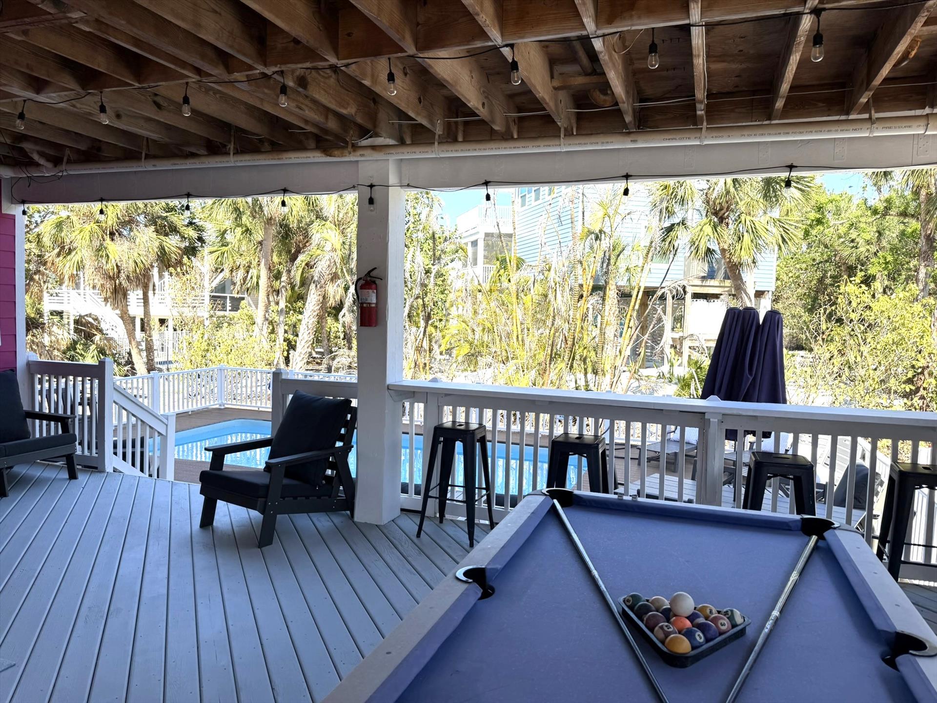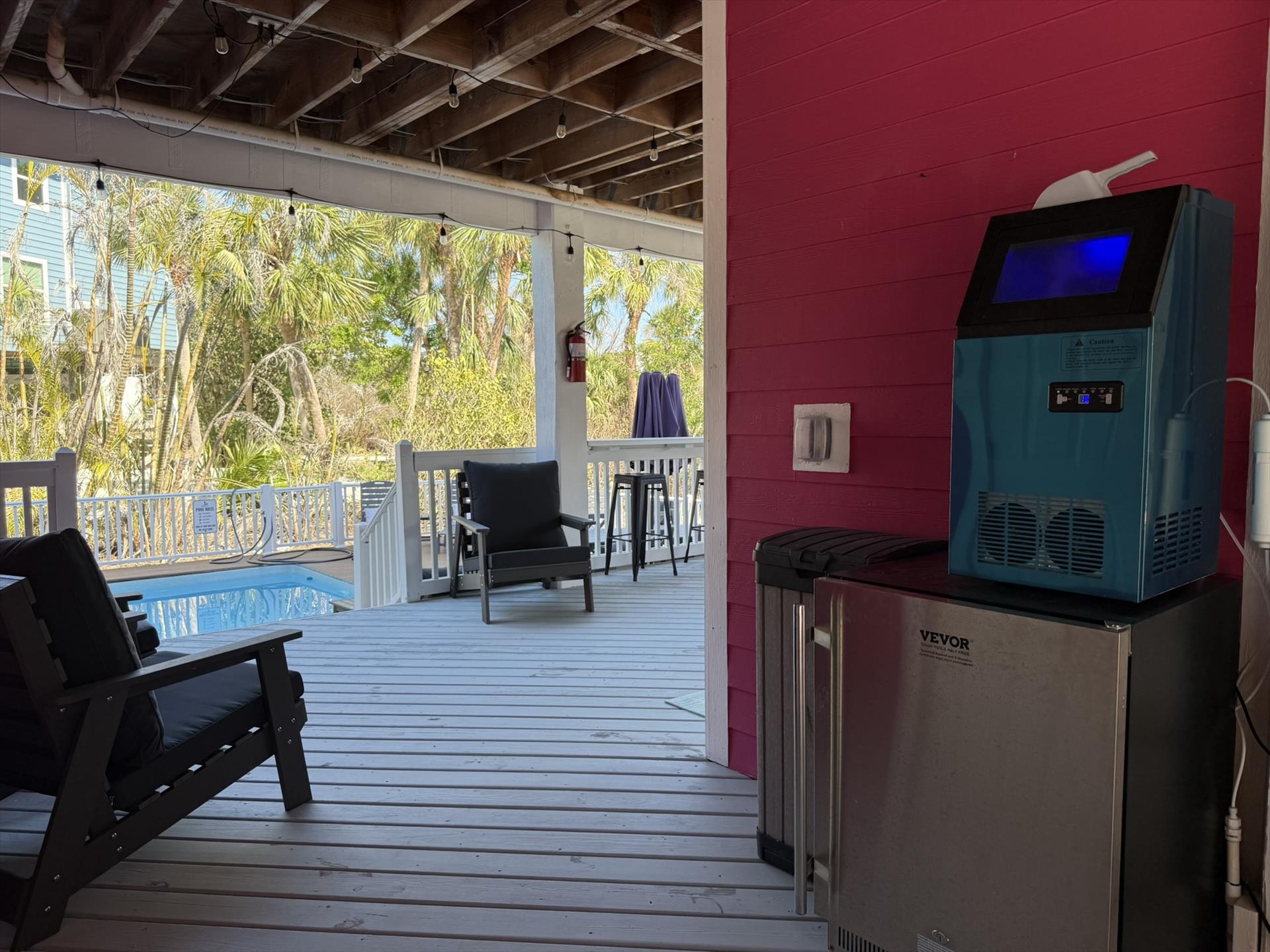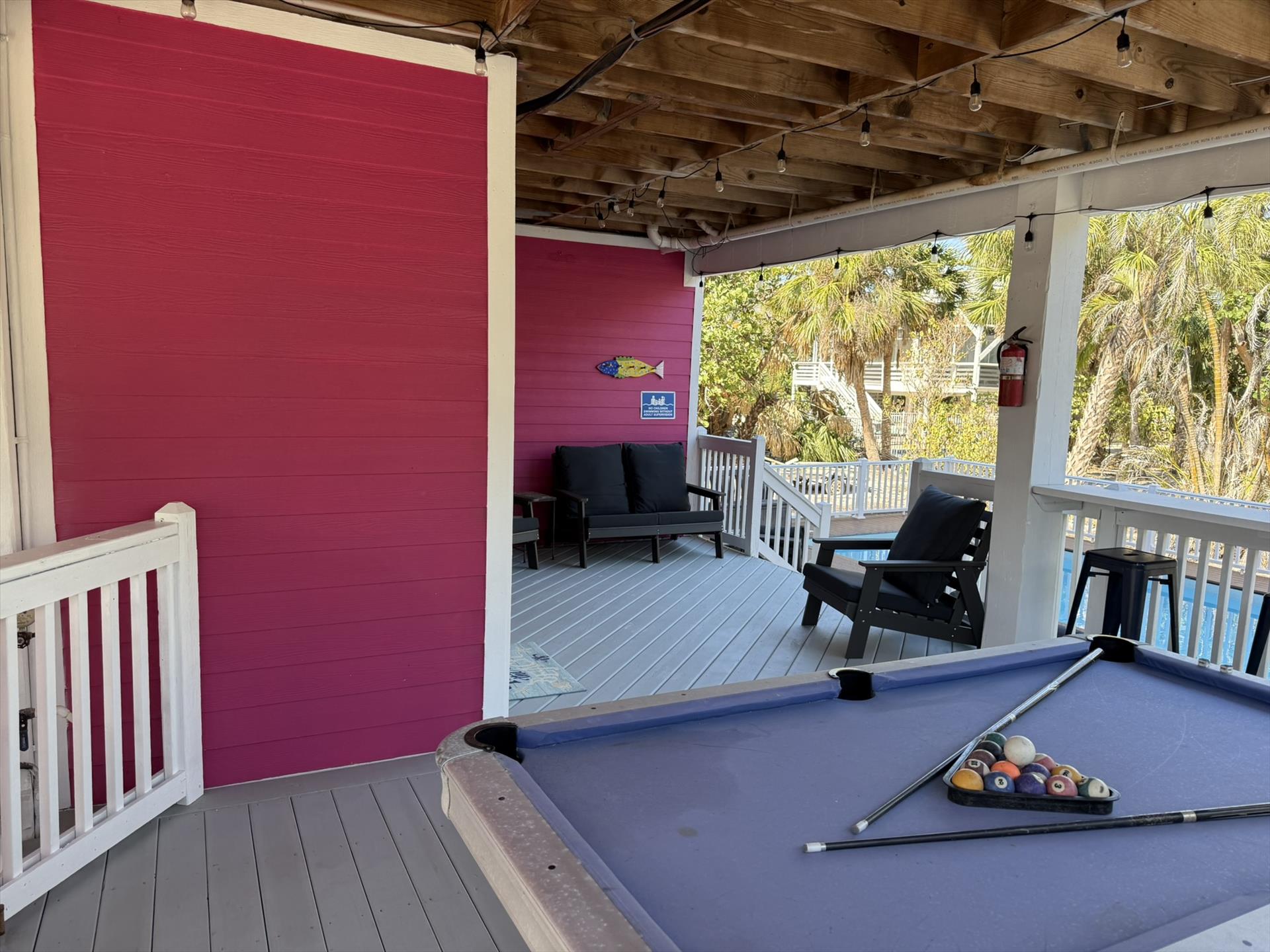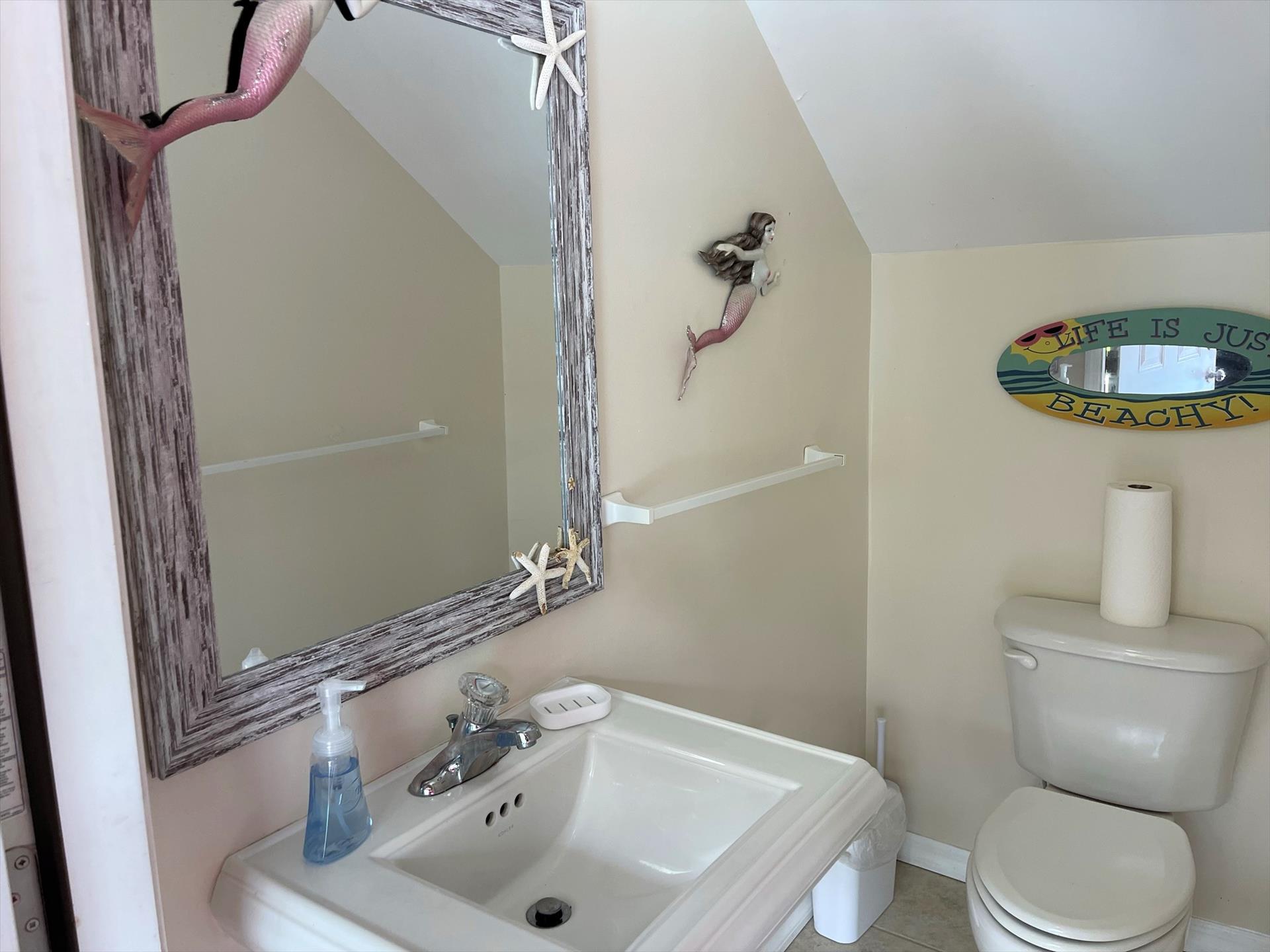* Half Bath also located on the Main Deck adjacent to the Inground Salt Water Heated Pool and Hot Tub great to change into your bathing suit or for a close bathroom * Two Outdoor Showers *Outdoor Ice Maker * Outdoor Compact Drink Fridge * Completely Fenced Pool and Deck Area DirecTV on all TVS except Smart TCL Internet TV in Kids Room * DVD Player * Cooler *Elevator for guests that may need assistance vs stairs * Two Kayaks with Oars and Life Vests *Full Size Basketball with Basketball  * Arcade Game * Board Games and Cards * Pool Table * Beach Toys * Beach Chairs * Beach Cabana * Beach Towels * Linens * Kitchen sink Reverse Osmosis * Vaulted Ceilings on Main Level * Solid Doors * All Tile* Lots of Closet Space *