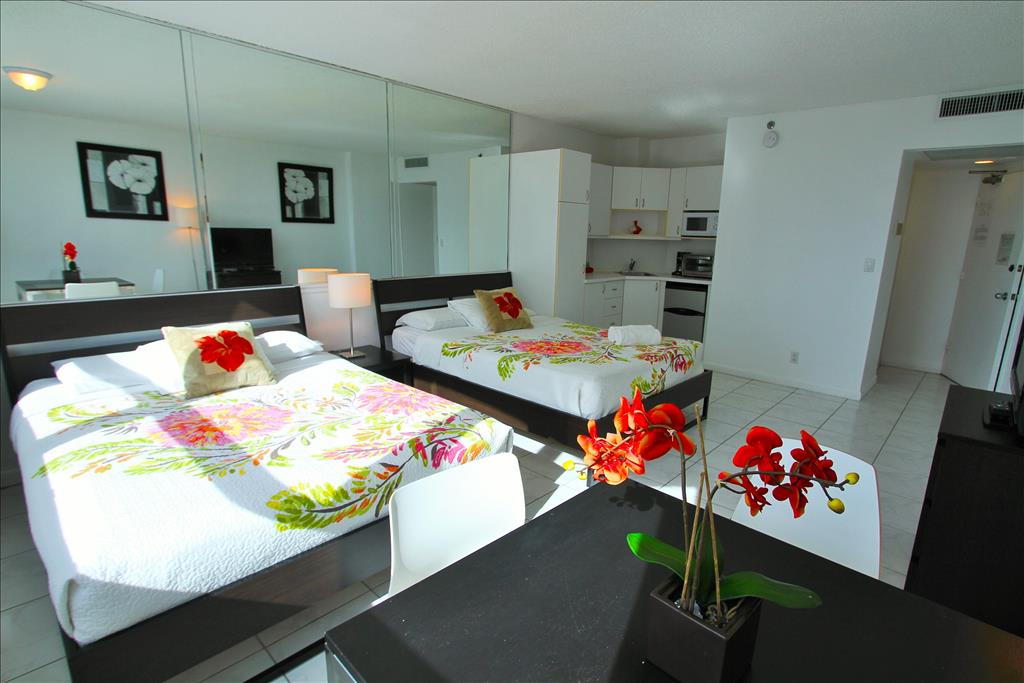 *** Studio con vista a la Bahia en el piso 11. Esta equipado para hasta 4 personas, con 2 camas queen, 1 bano y kitchenette (No cocina completa). La reservacion total incluye internet y cable basico , limpieza final , taxes y esatcionamiento gratis para 1 auto a traves del Sistema de Valet Parking.