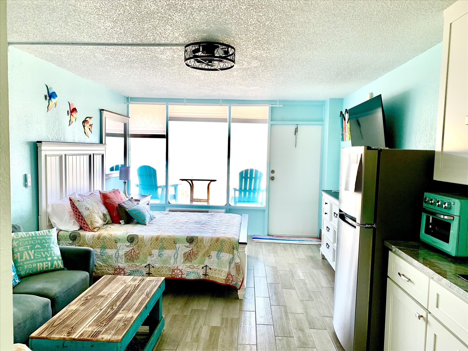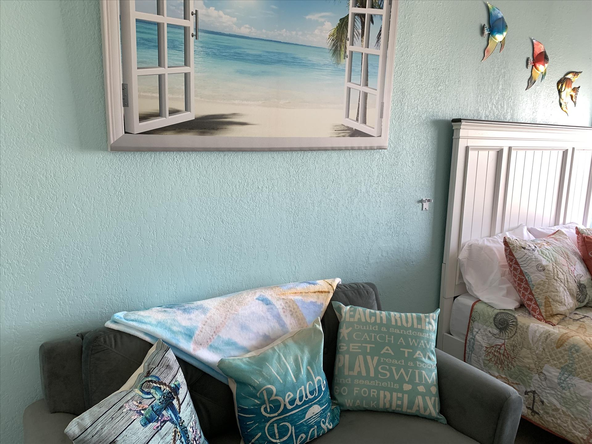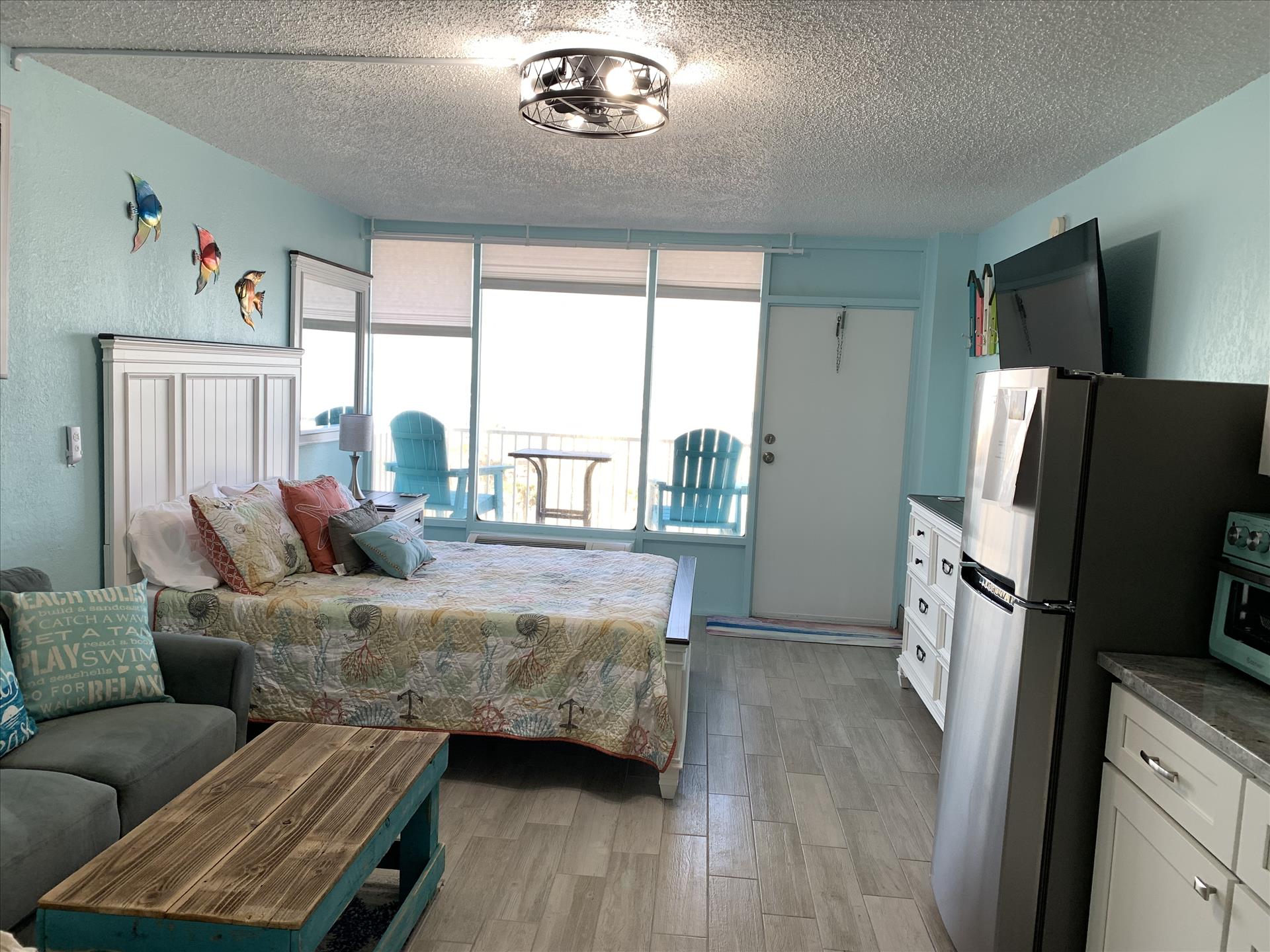 Welcome to your beachfront oasis! This beautifully decorated room offers a serene retreat with an ocean view from the balcony. The comfy mattress ensures a peaceful night's sleep or a cozy nap.