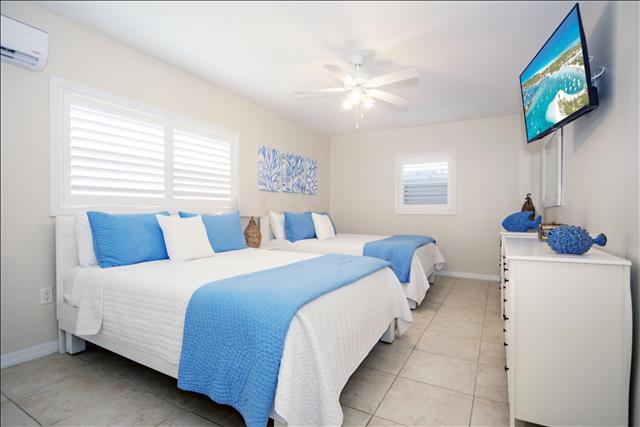Each bedroom can be environmentally controlled to achieve each person’s individual comfort level, linens, bath, and beach towels are supplied. All Entertainment amenities included with the house are flat-screen TV’s, cable televisions, Roku devices in each room, DVD player, Wireless Bluetooth speaker for music, and free wireless high-speed internet. For family fun, assorted board games, playing cards, and books are available. There is a beach at the top and bottom of the property with lounge chairs and umbrellas ready for a day in the sun. Need to rinse off the sand after a day on the beach? The house offers two outdoor showers: one on the beach and one attached to the house.