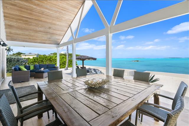 Dine and entertain with a spectacular view of the ocean on the outdoor covered veranda. Seating at the dining table for 8 or relax on the sectional sofa. An outdoor gas grill is ready for your use, and while you are waiting for dinner, you can play some cornhole.
