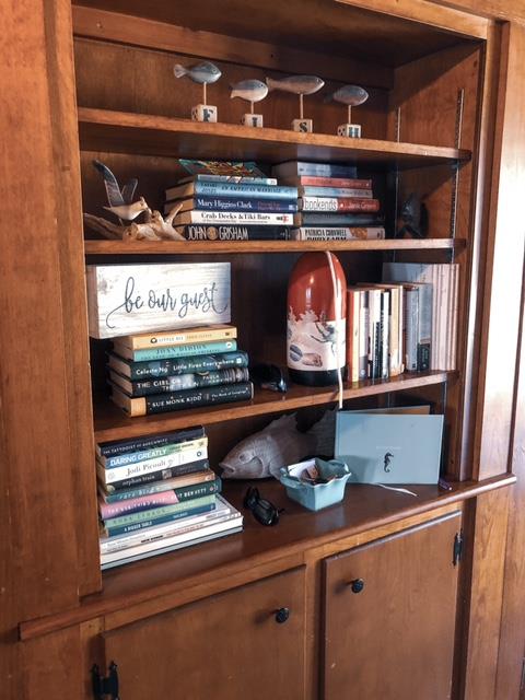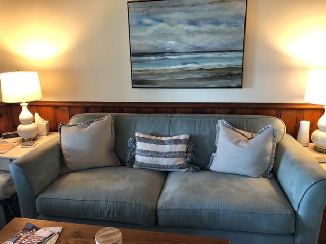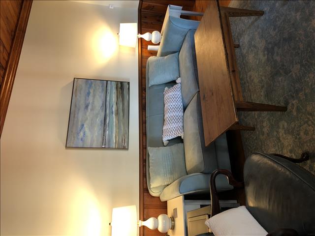 The wood paneled living room is a great place to do puzzles and play games from our supply.