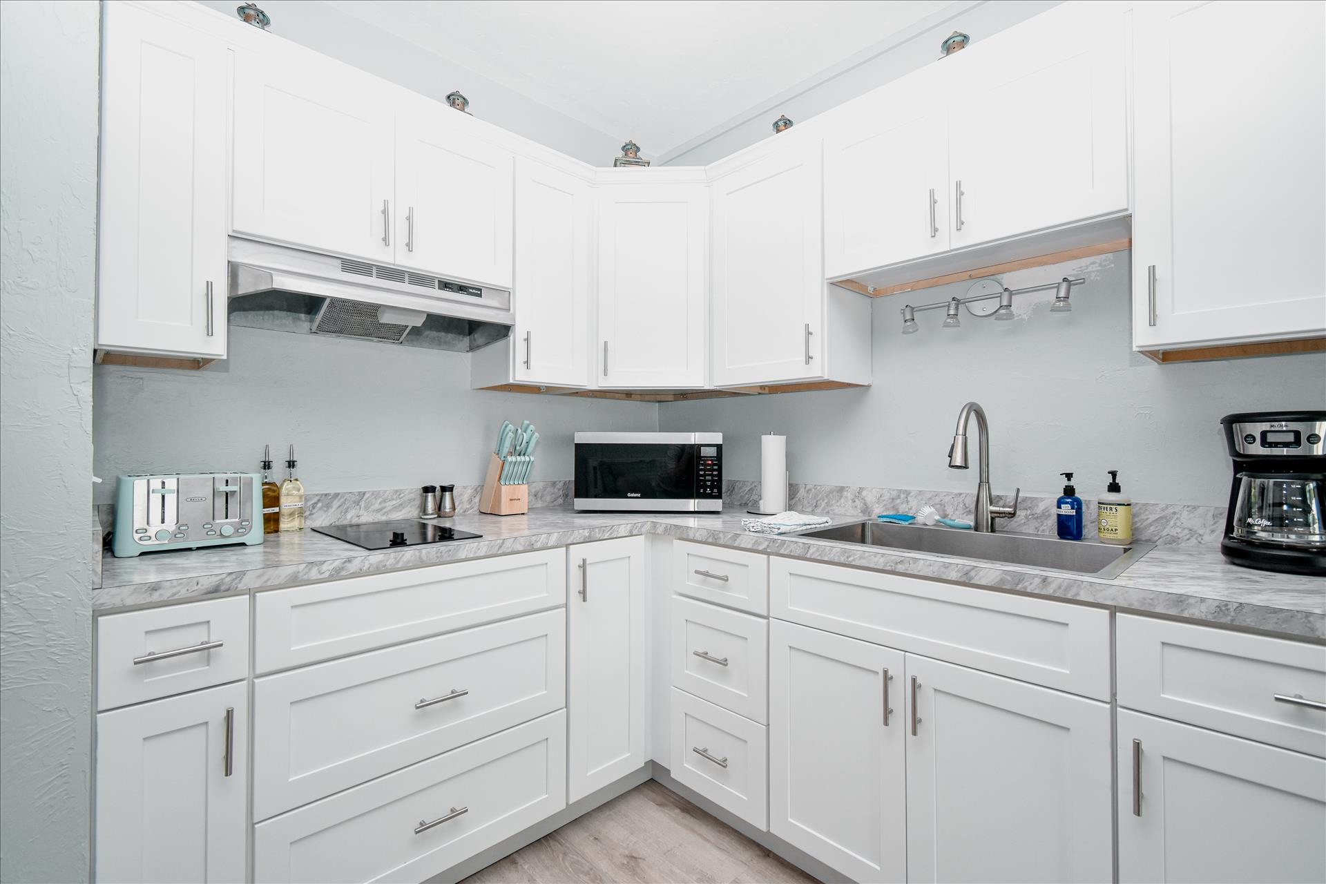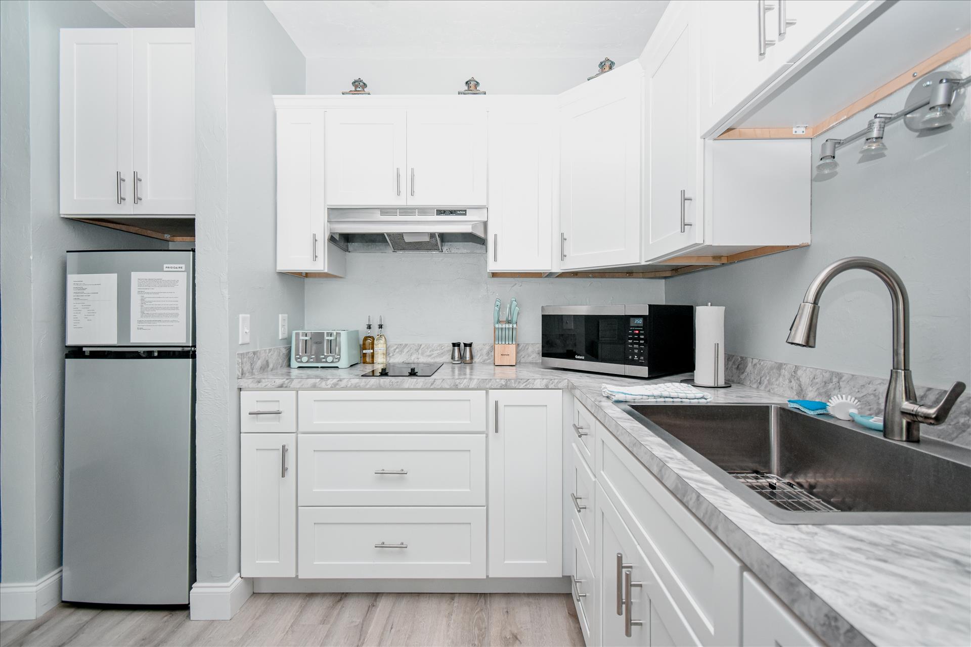 • Kitchenette with a full size refrigerator/freezer