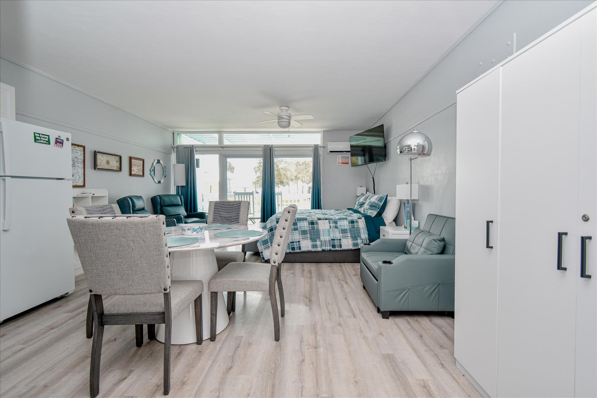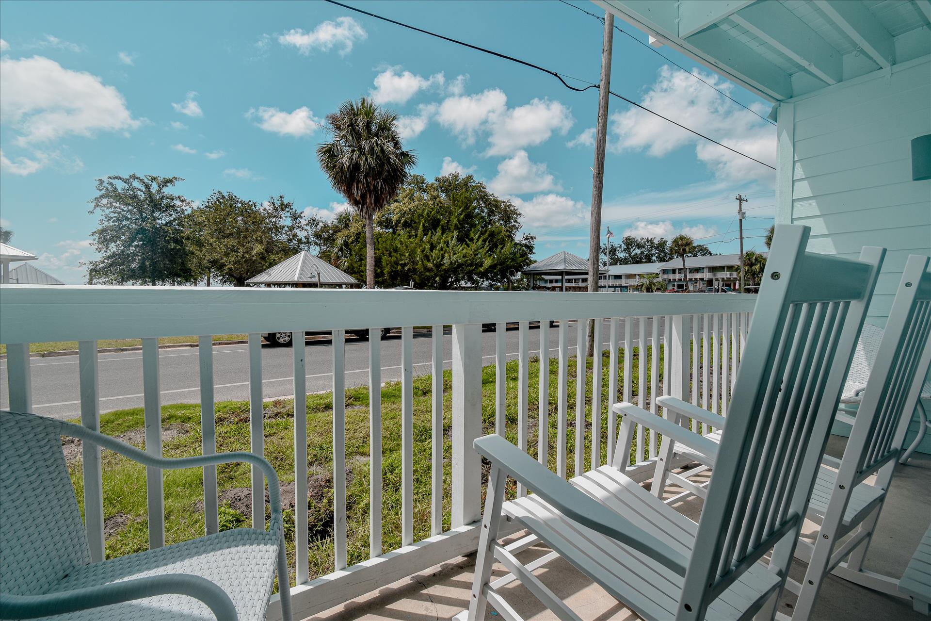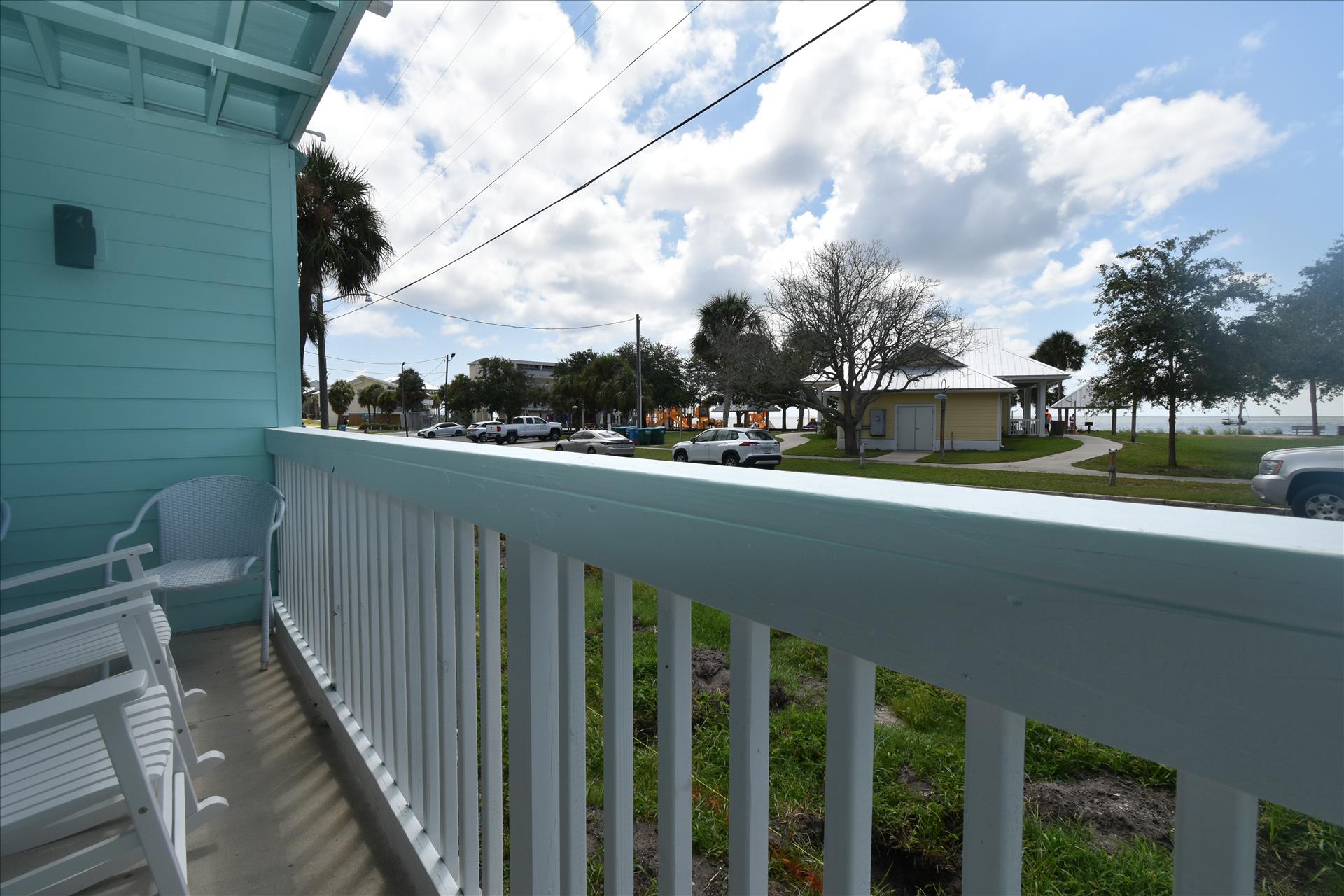 We are directly across from the park and have a great view of the Gulf and the dolphins playing!