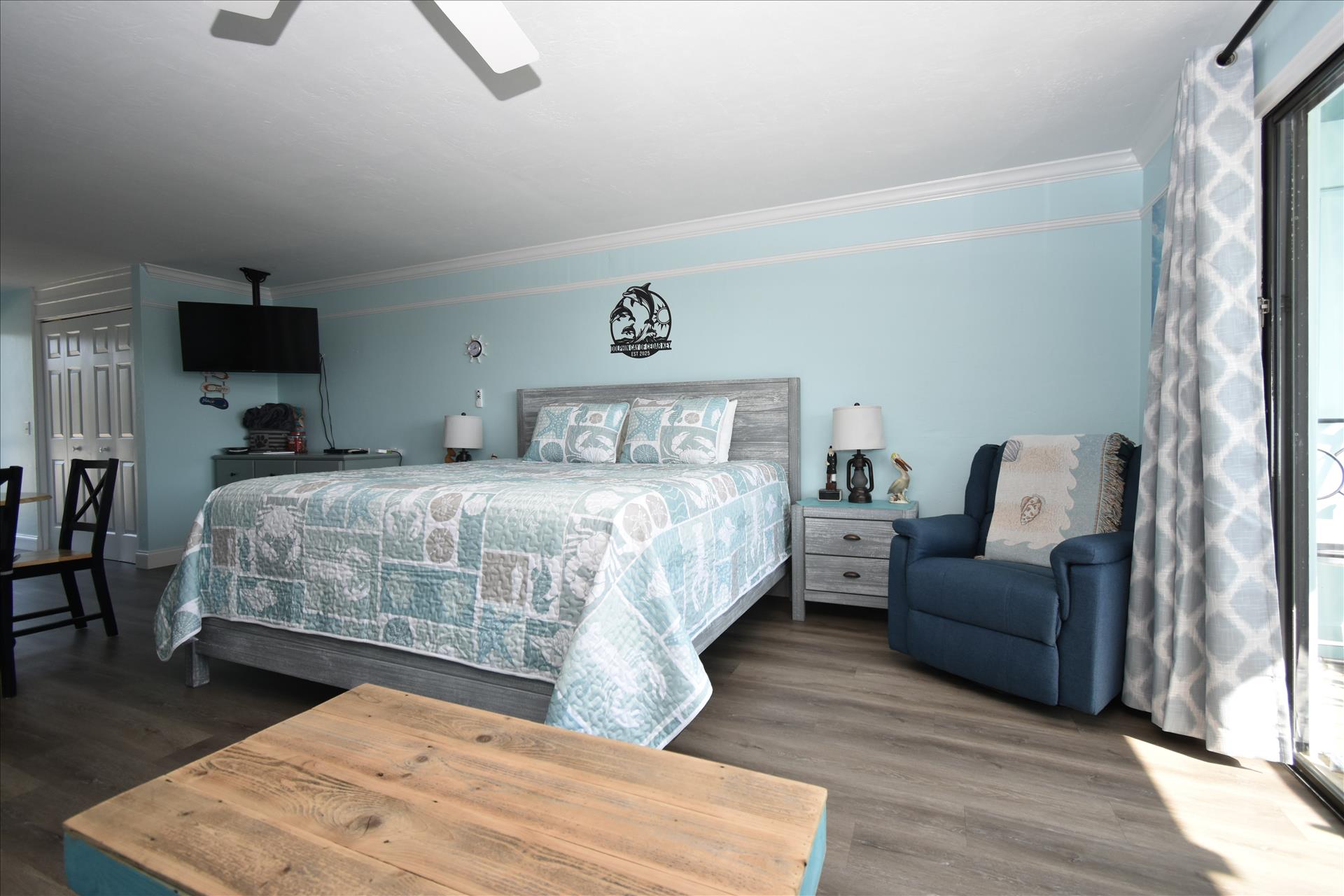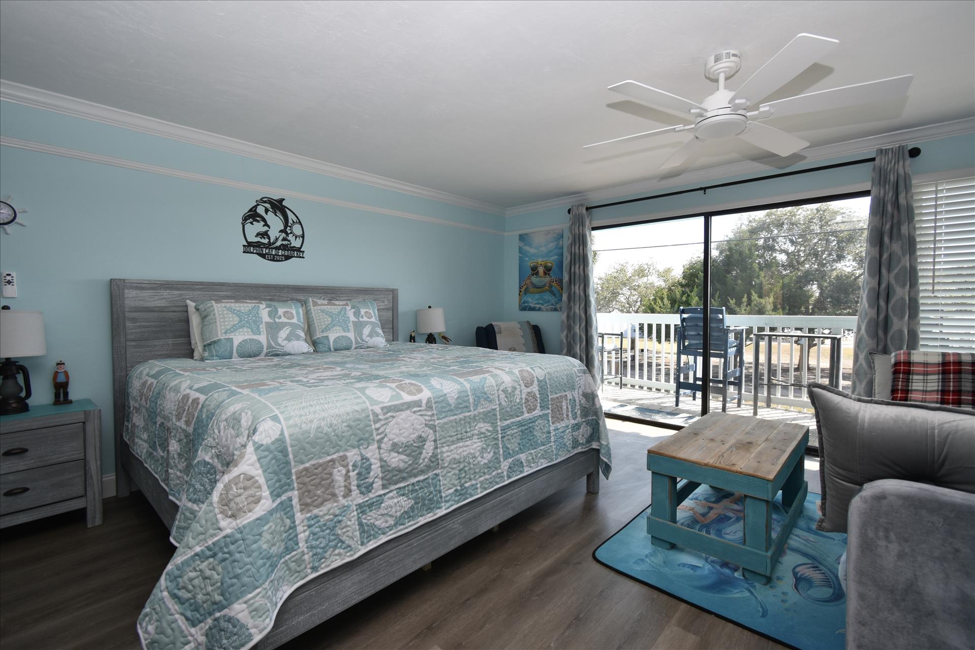 This cozy number offers you a king sized bed and a comfortable couch. The kitchen has a 4 burner stove, microwave, toaster, coffee maker and refrigerator. See you soon! (2nd floor not wheelchair accessible)