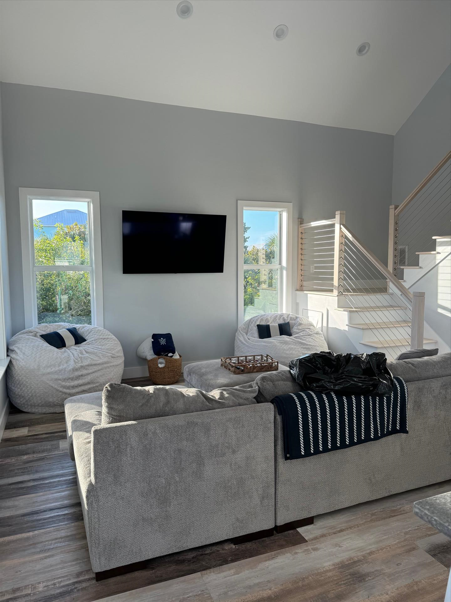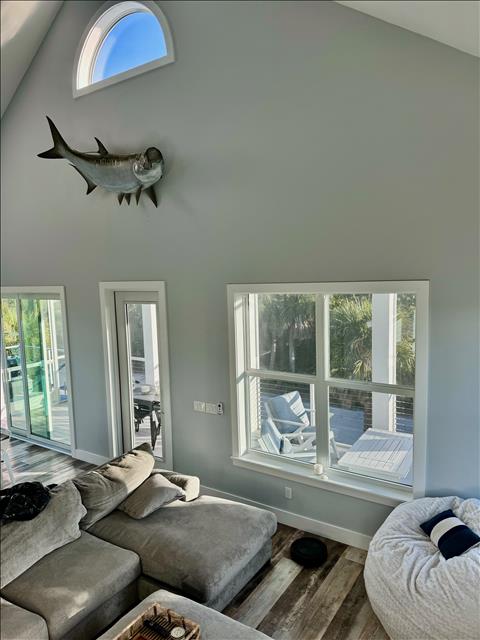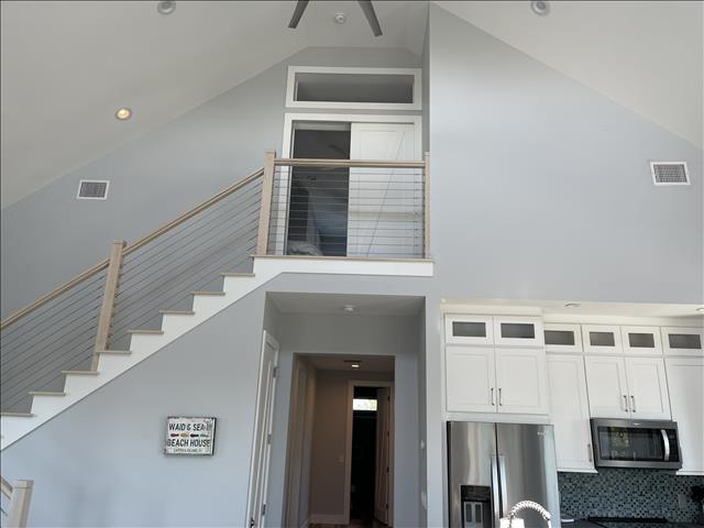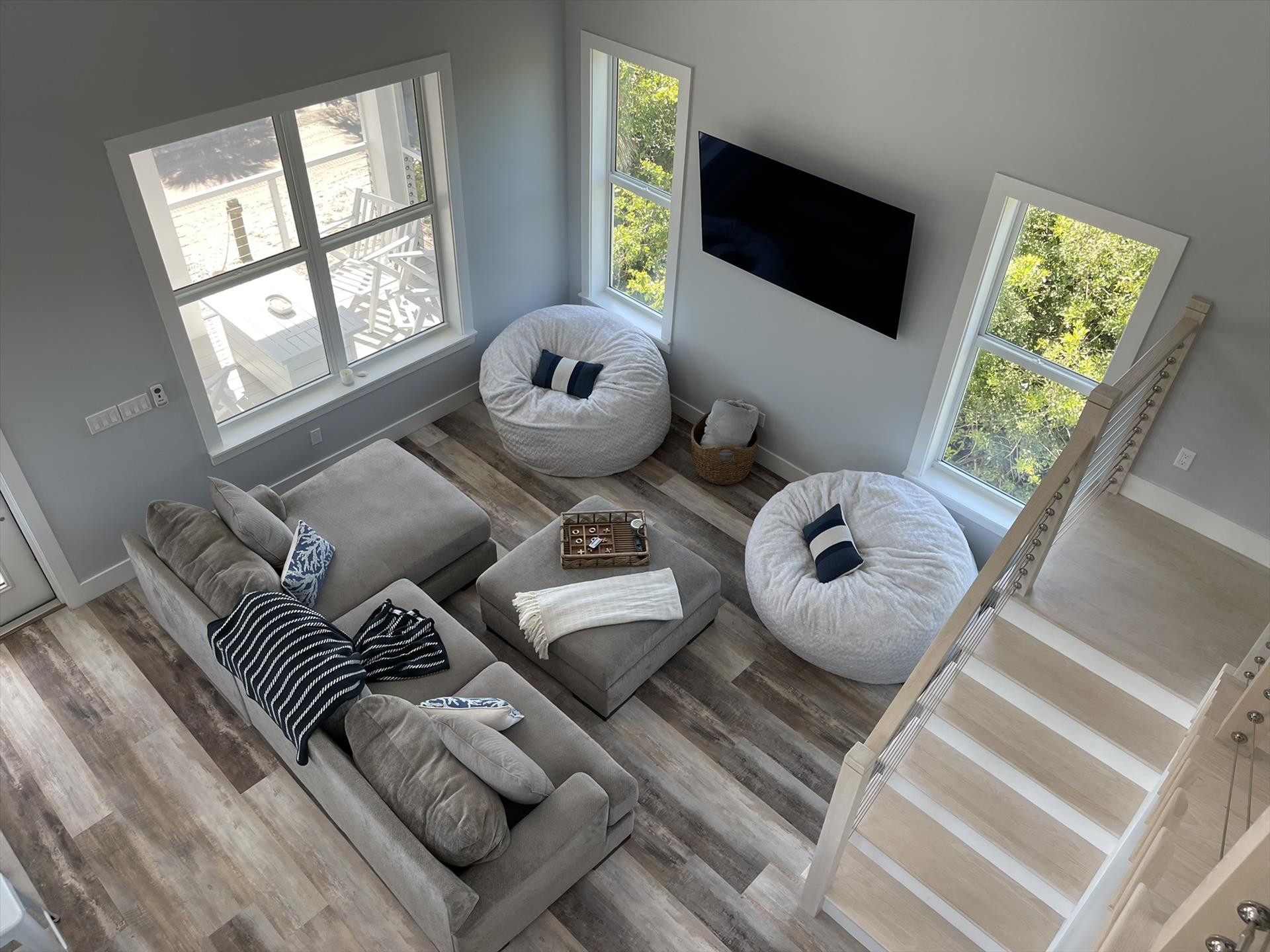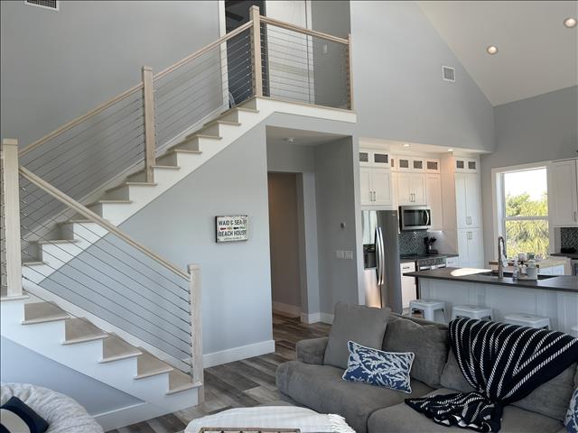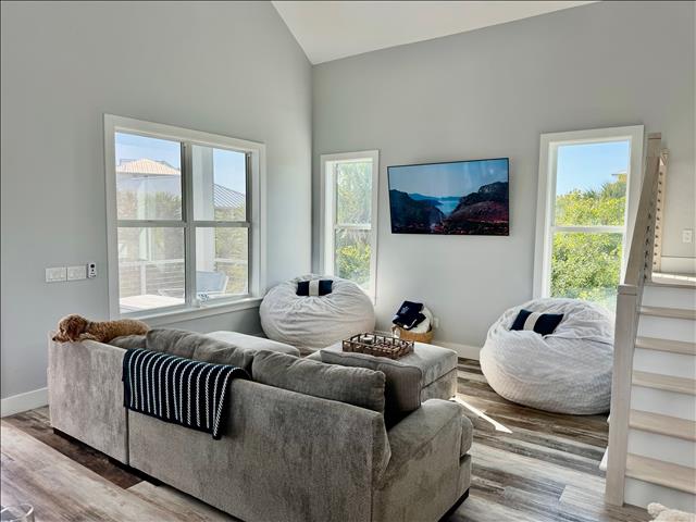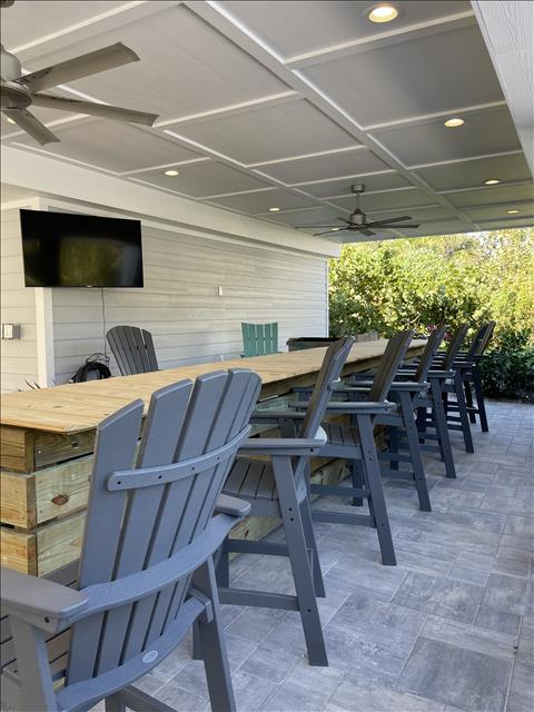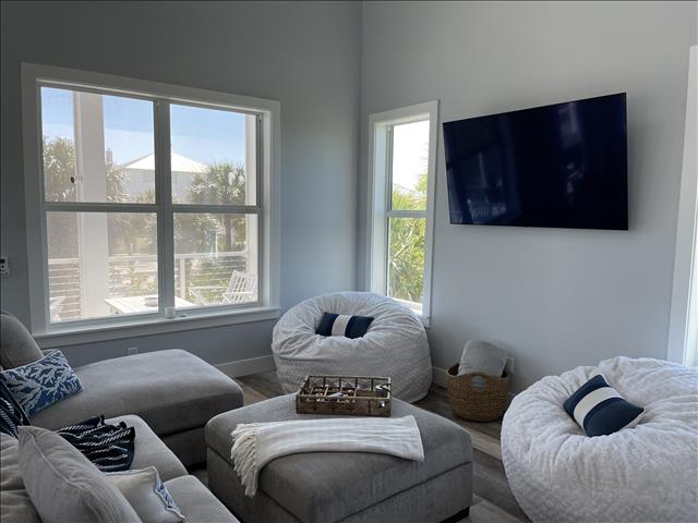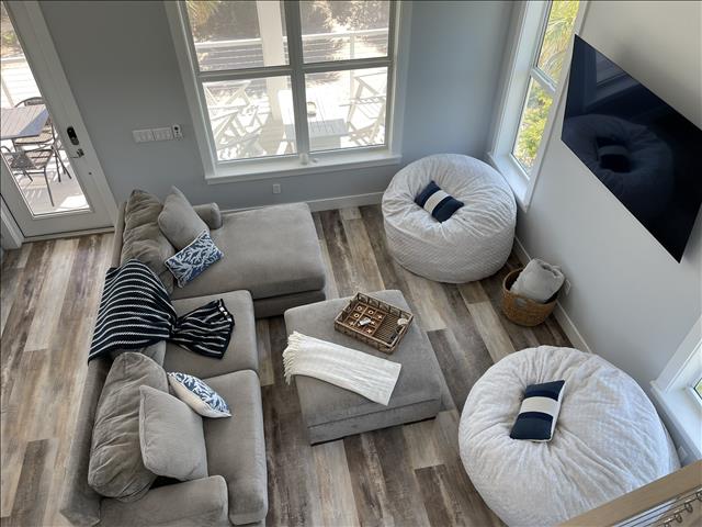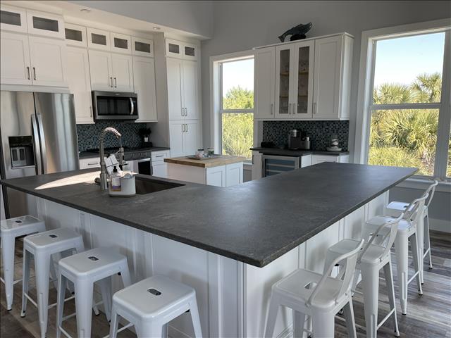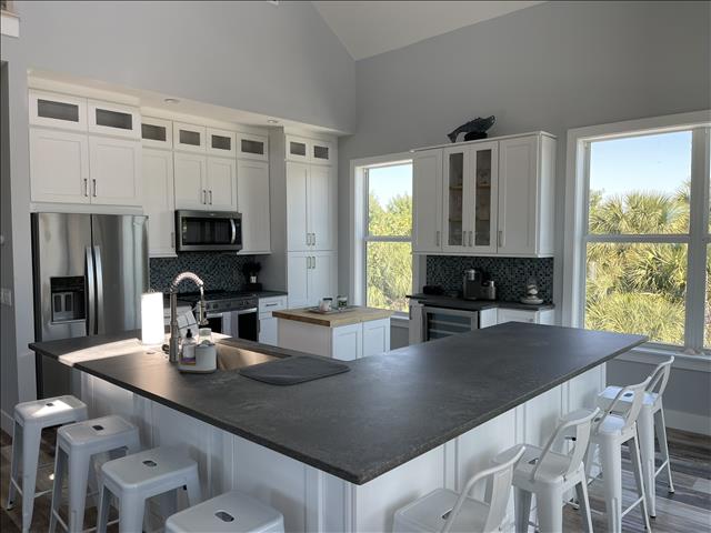 Gorgeous 4 Bedrooms, 3 Full Baths, Large Kitchen Island with Seating for 8, Full Refrigerator, Beverage Refrigerator, Soaring Ceilings, Recess Lighting Throughout, Living Room, Inside Laundry Room with Full Size Washer and Dryer. Linens, Towels, Beach Towels, Beach Toys, Beach Chairs, 2 Beach Umbrellas included. Propane and Propane Grill Included. 2 Golf Carts included Complimentary. Starter Toiletries included which is Dish Soap, Laundry Soap, Sponge, Garbage Bags, Shampoo, Conditioner, and Body Soap.