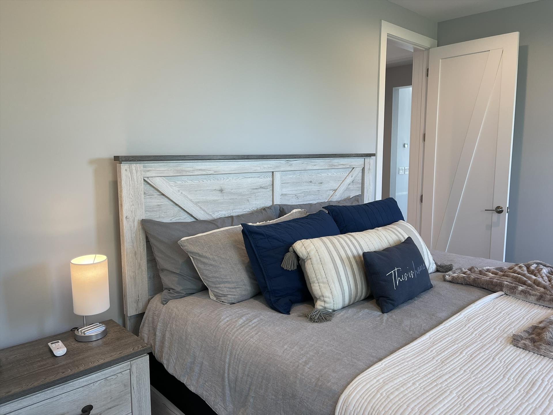 1st Floor - Guest Bedroom Right Side - Queen Size Bed, Bureau, Closet, Nightstand, and Fan.