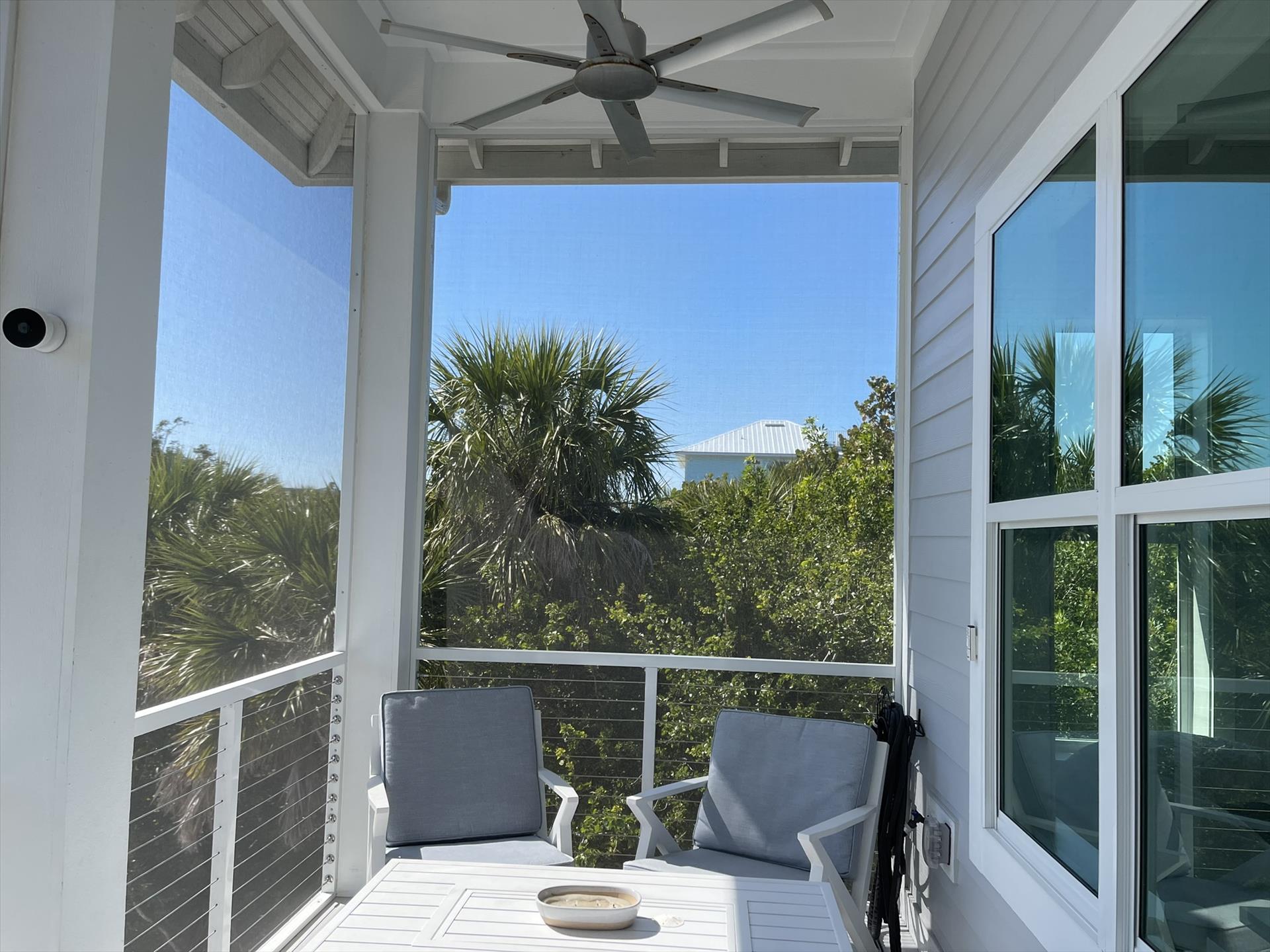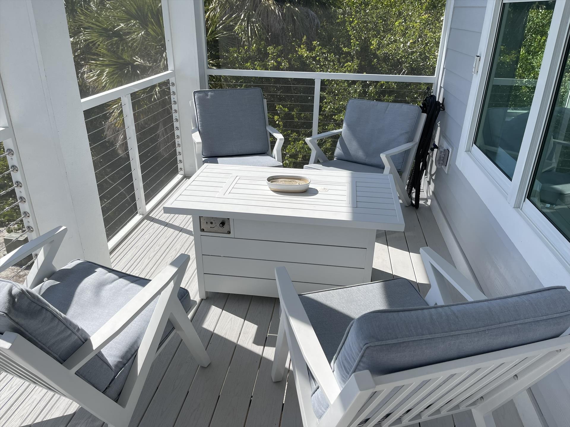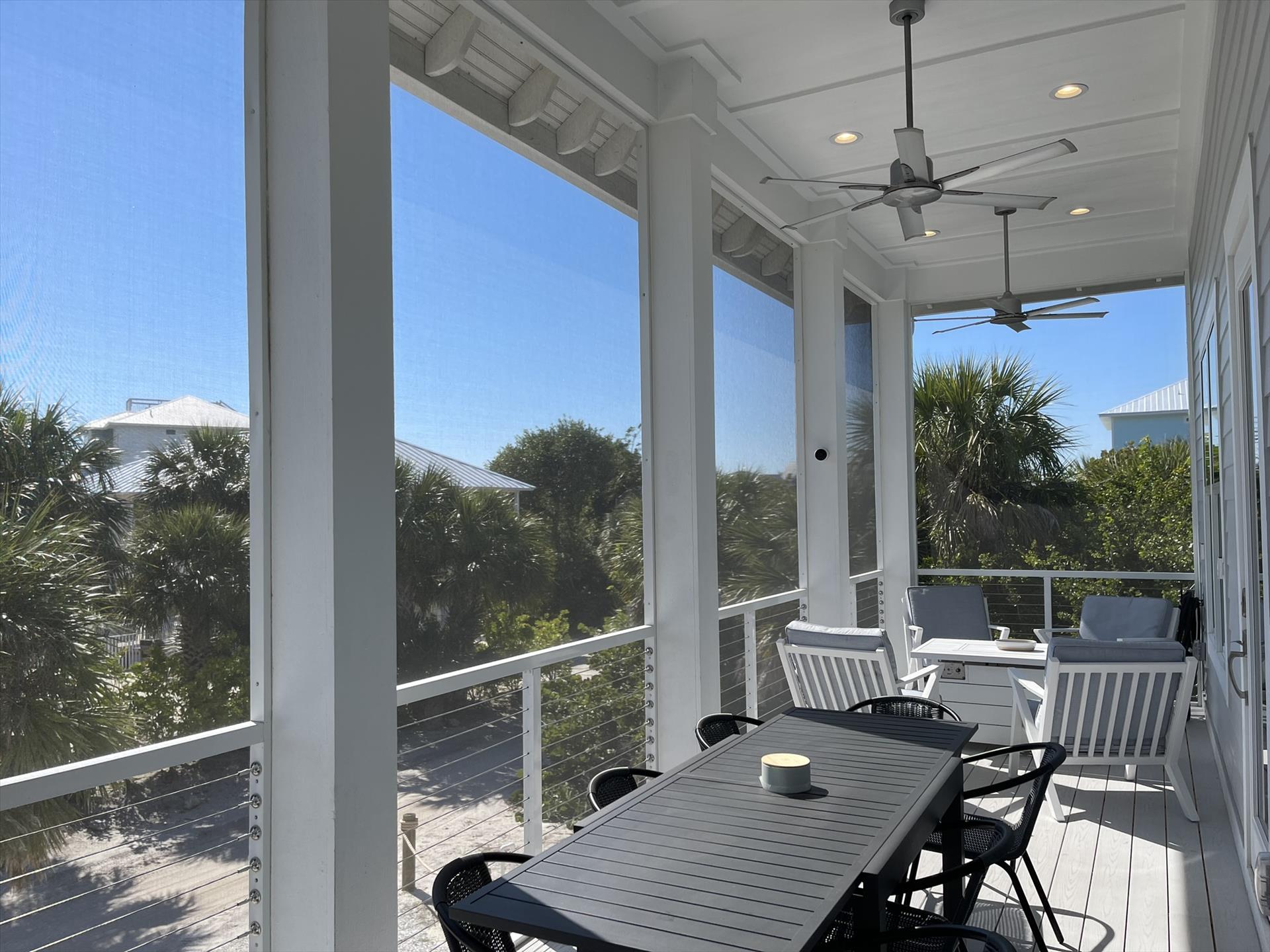 Huge Front Screened Balcony with Dining Table for 8 and Sitting Area for 4